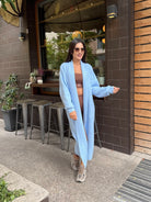 Дълга жилетка в наситено синьо – модерно решение за динамичния градски стил. Лесна за комбинации и подходяща за всеки сезон.