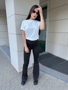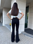 Модерен и елегантен панталон с висока талия и разкроен крачол, който издължава силуета и подчертава женствените линии. Изработен от еластична материя за максимален комфорт и перфектно прилягане към тялото. Лесен за съчетаване както с ежедневни топове и тениски, така и с елегантни ризи или сако.