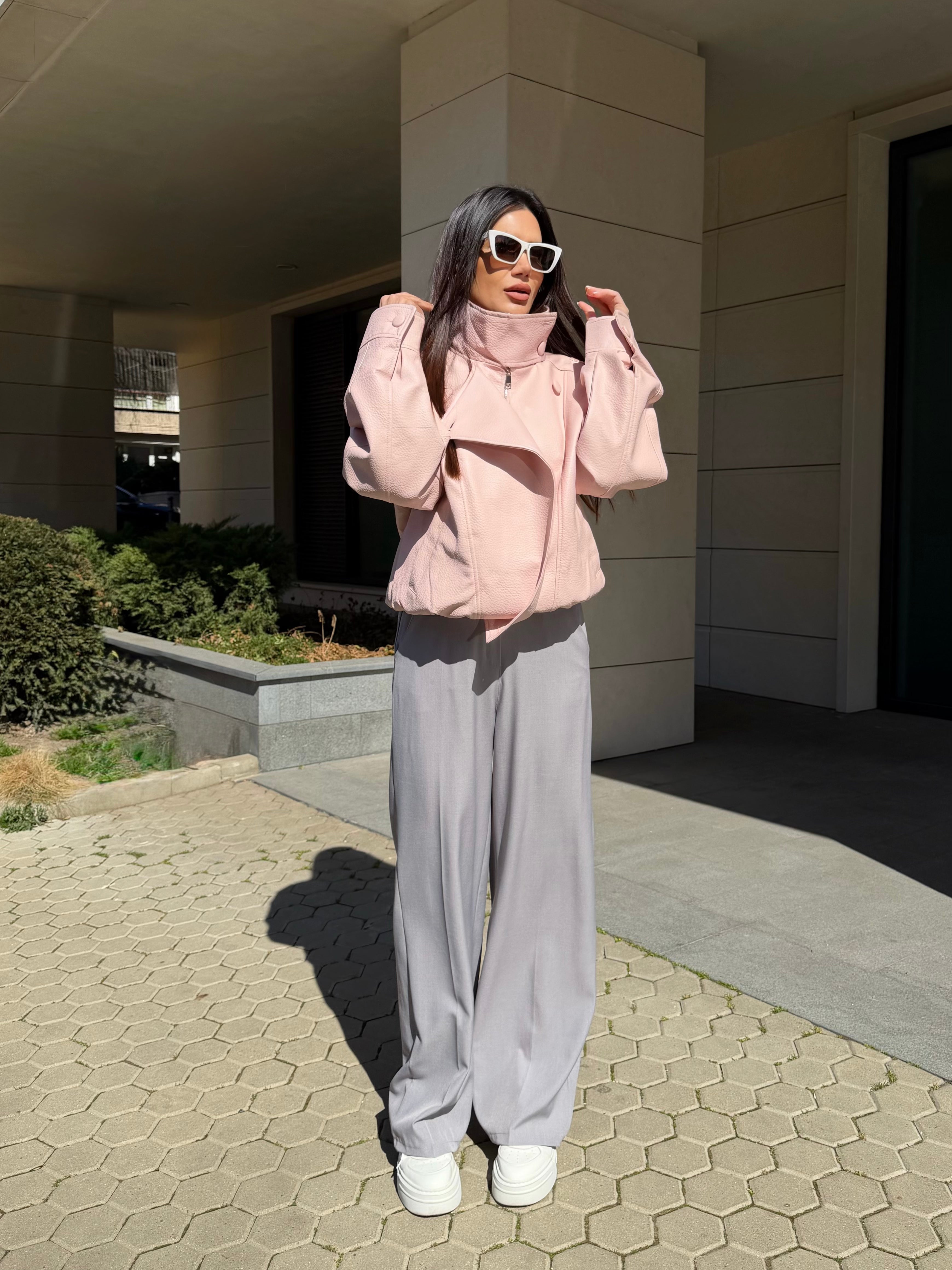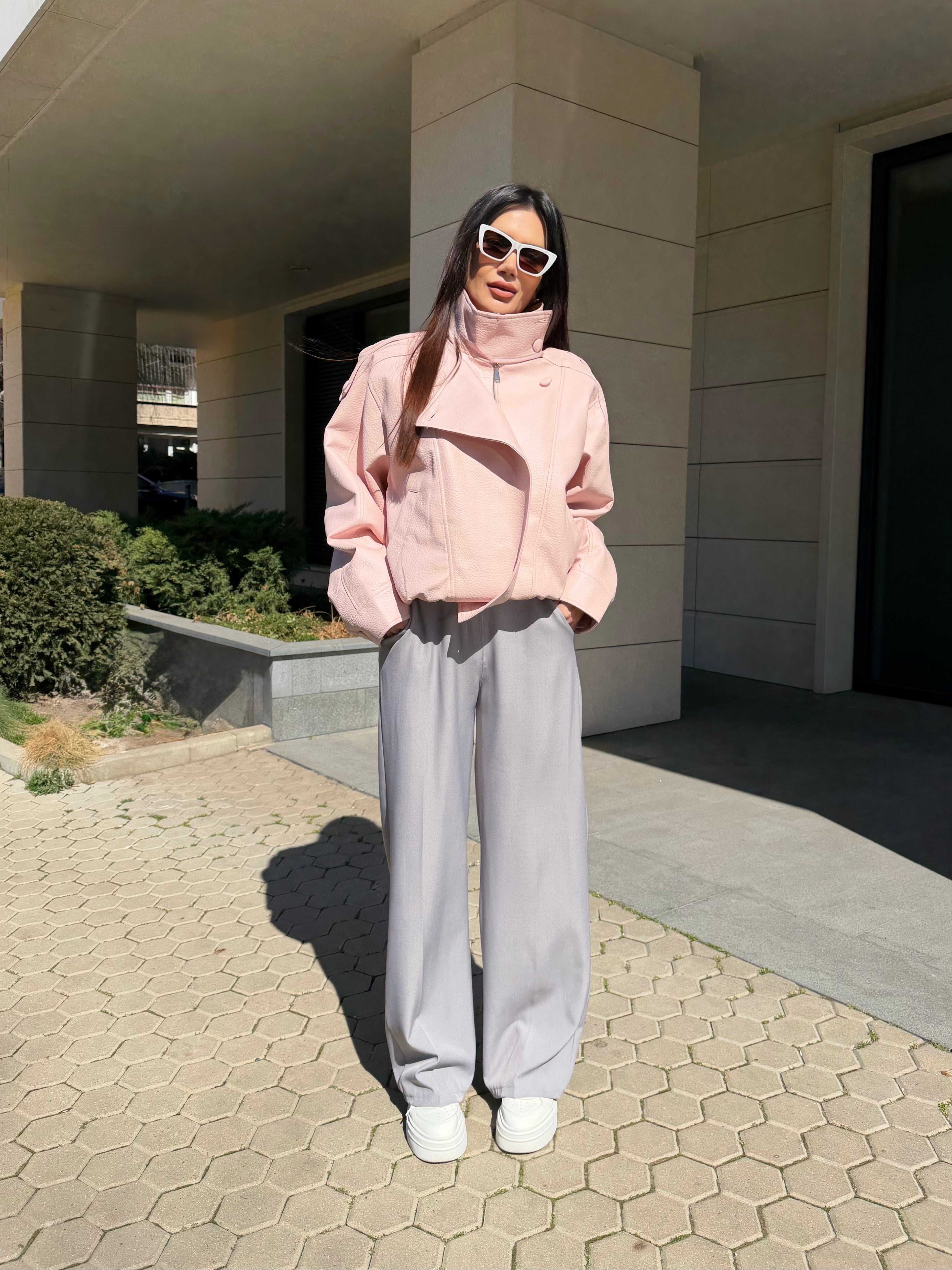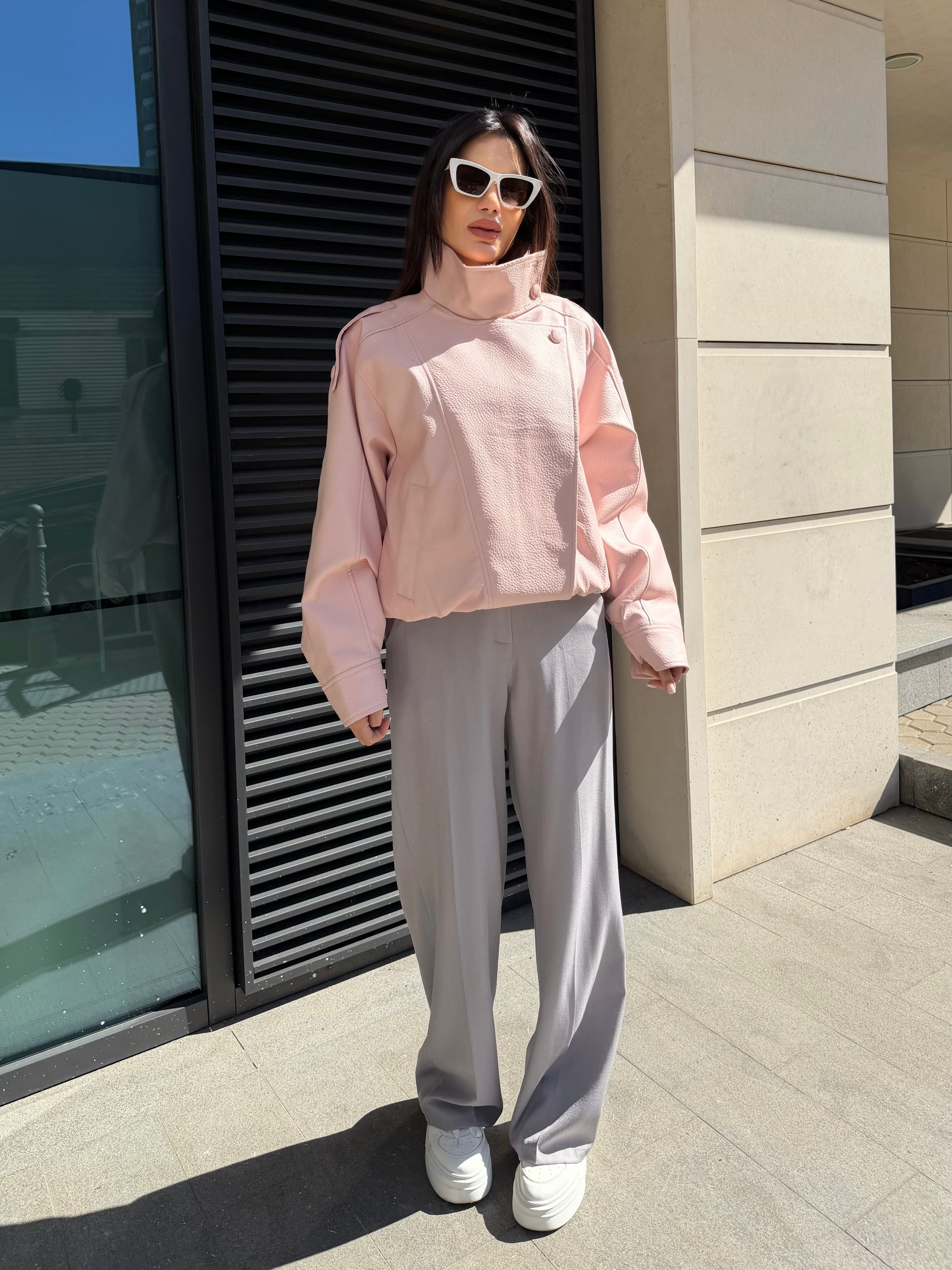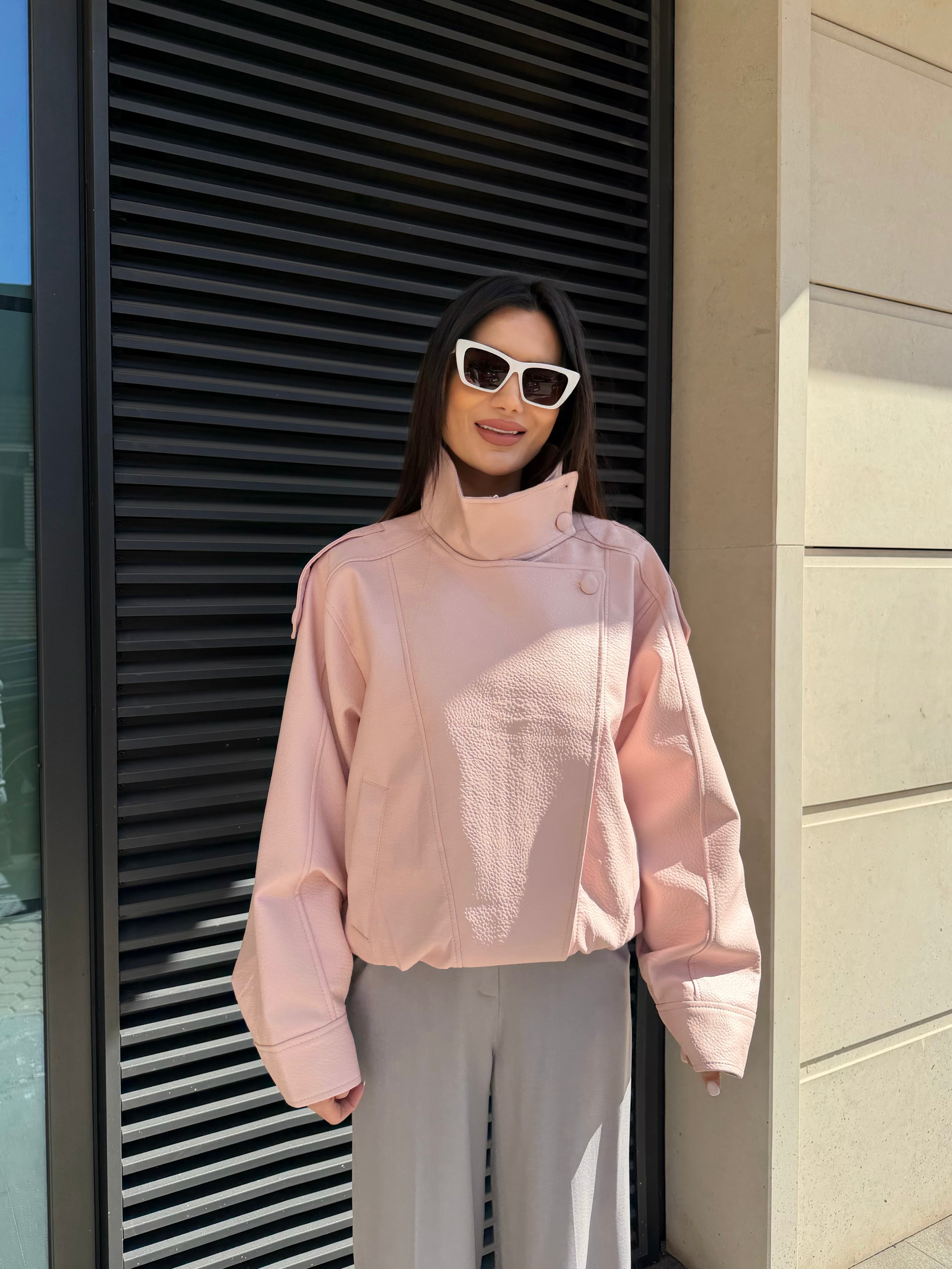 Oversize розово кожено яке