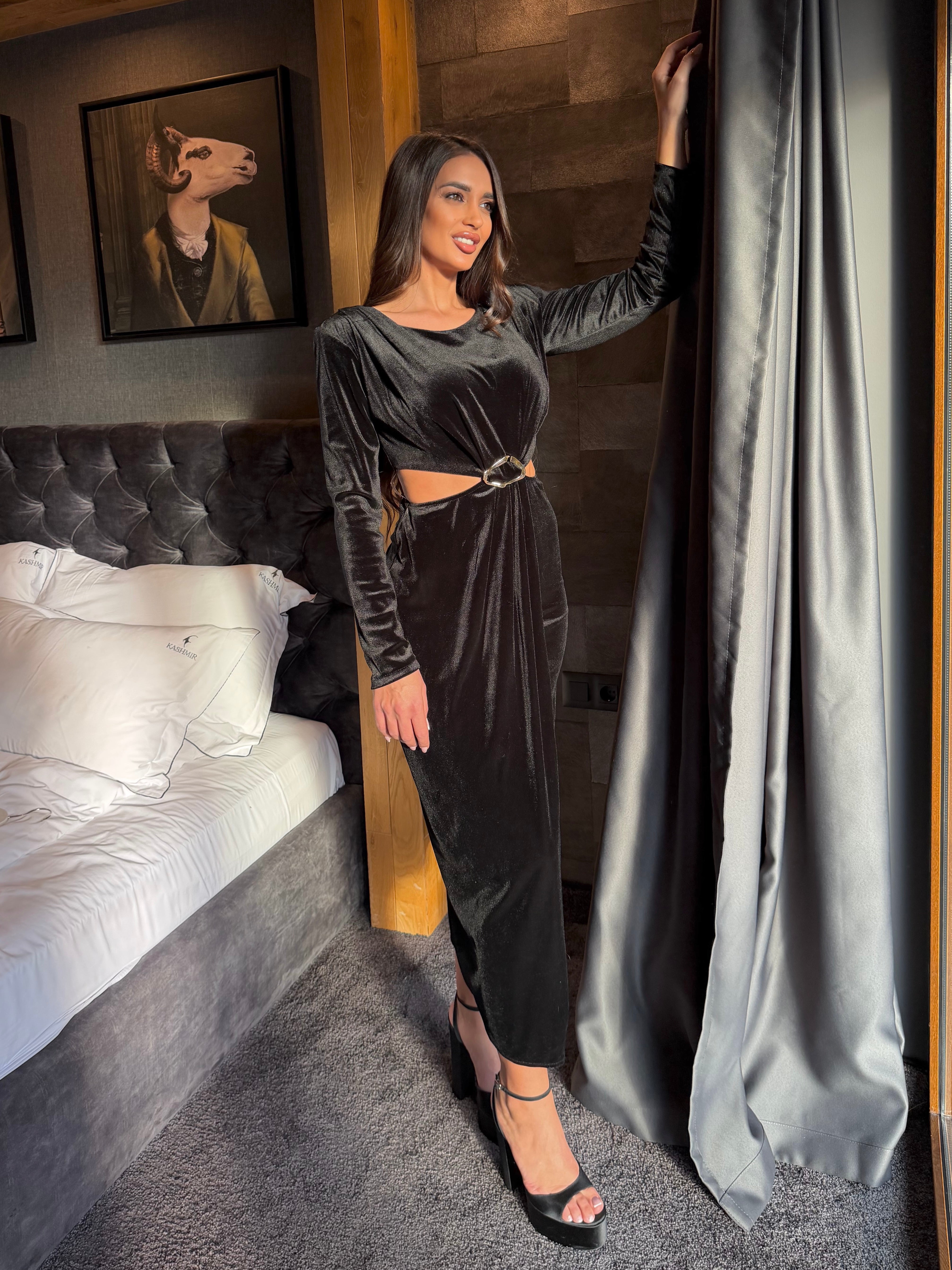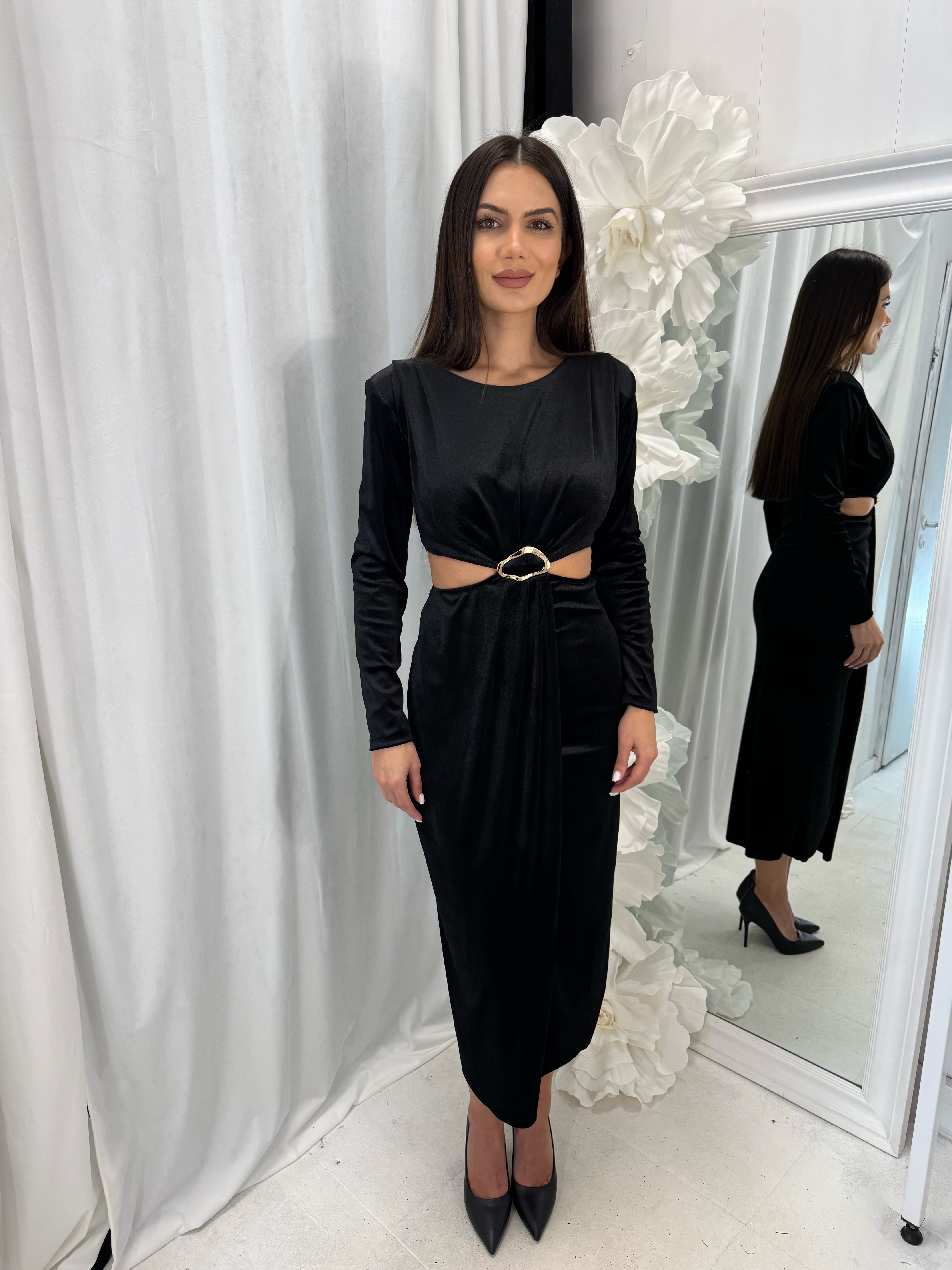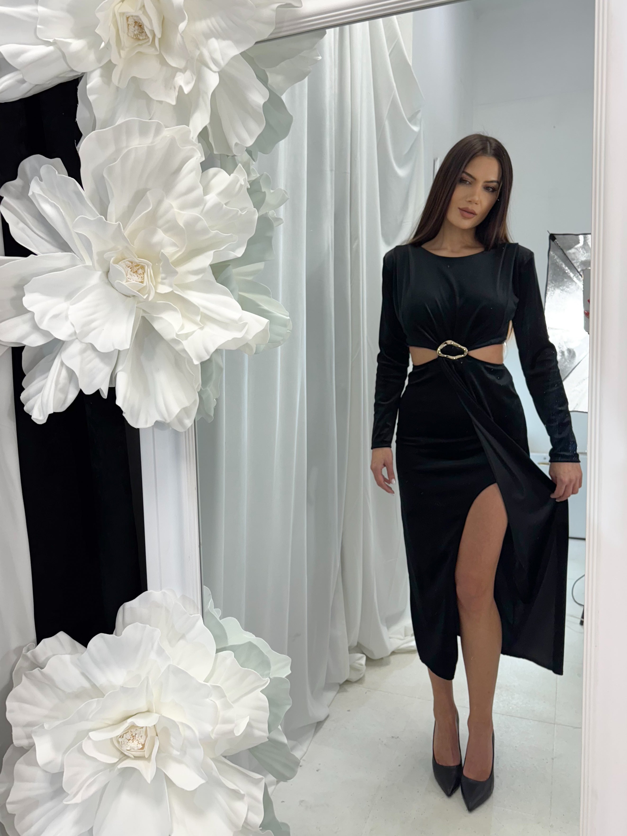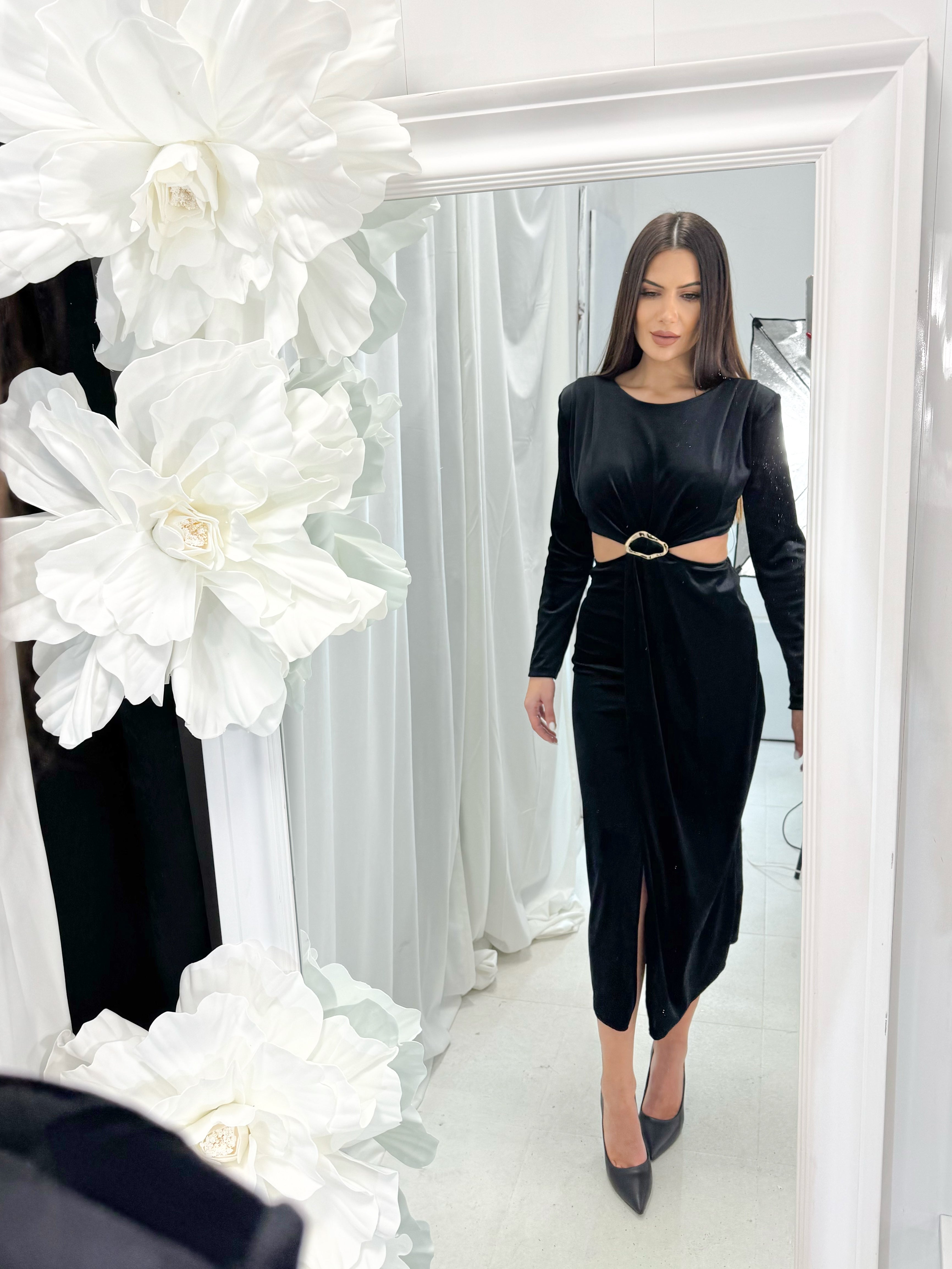 Rochia KIM GOLD este combinația perfectă între eleganță și minimalism. Este confecționată dintr-un material fin, elastic, care accentuează feminitatea și creează un ușor efect de drapaj. Detaliul auriu din talie conferă un aspect luxos și accentuează silueta. O alegere ideală pentru ocazii speciale, evenimente de seară sau ieșiri elegante în timpul zilei.