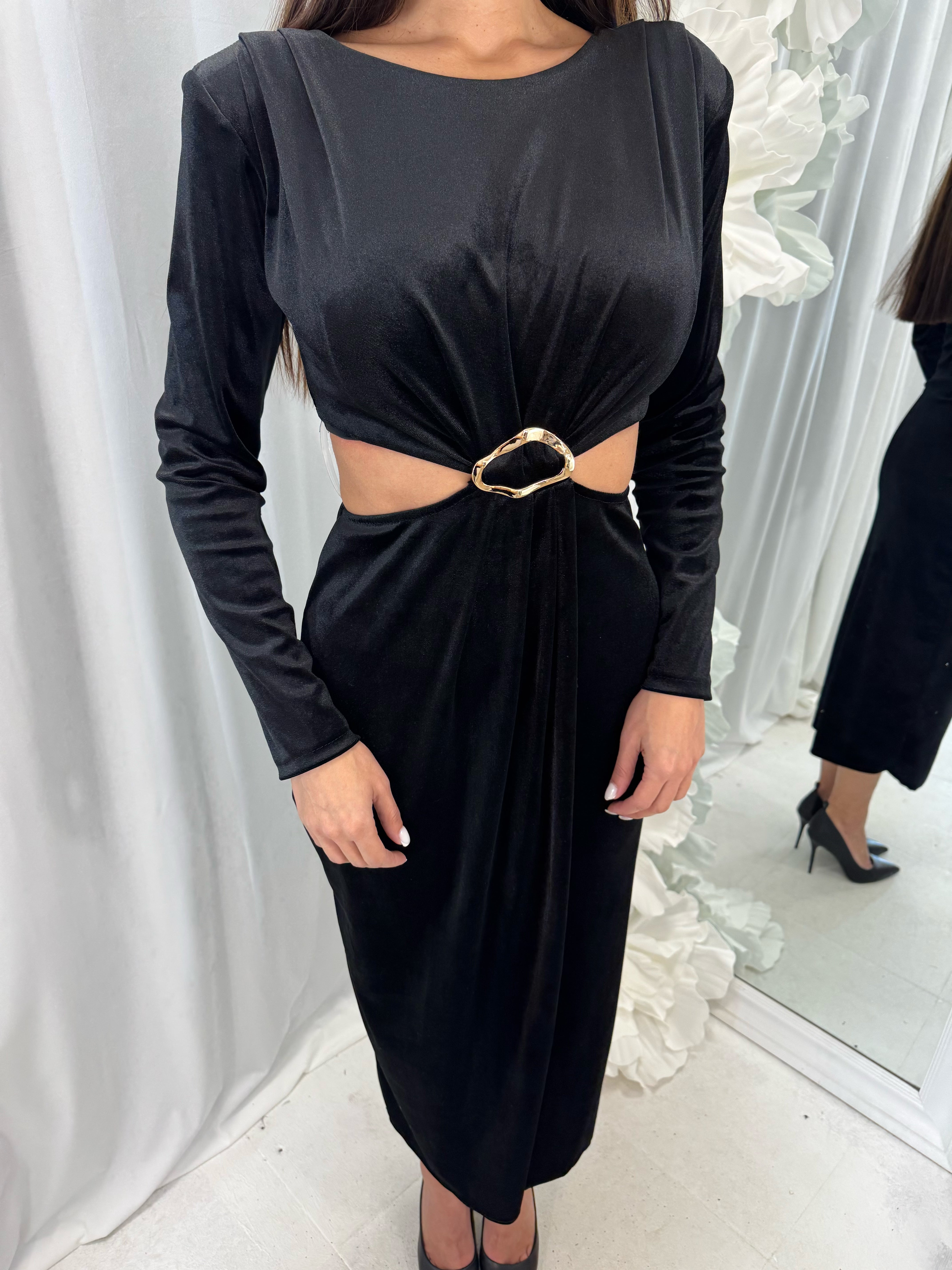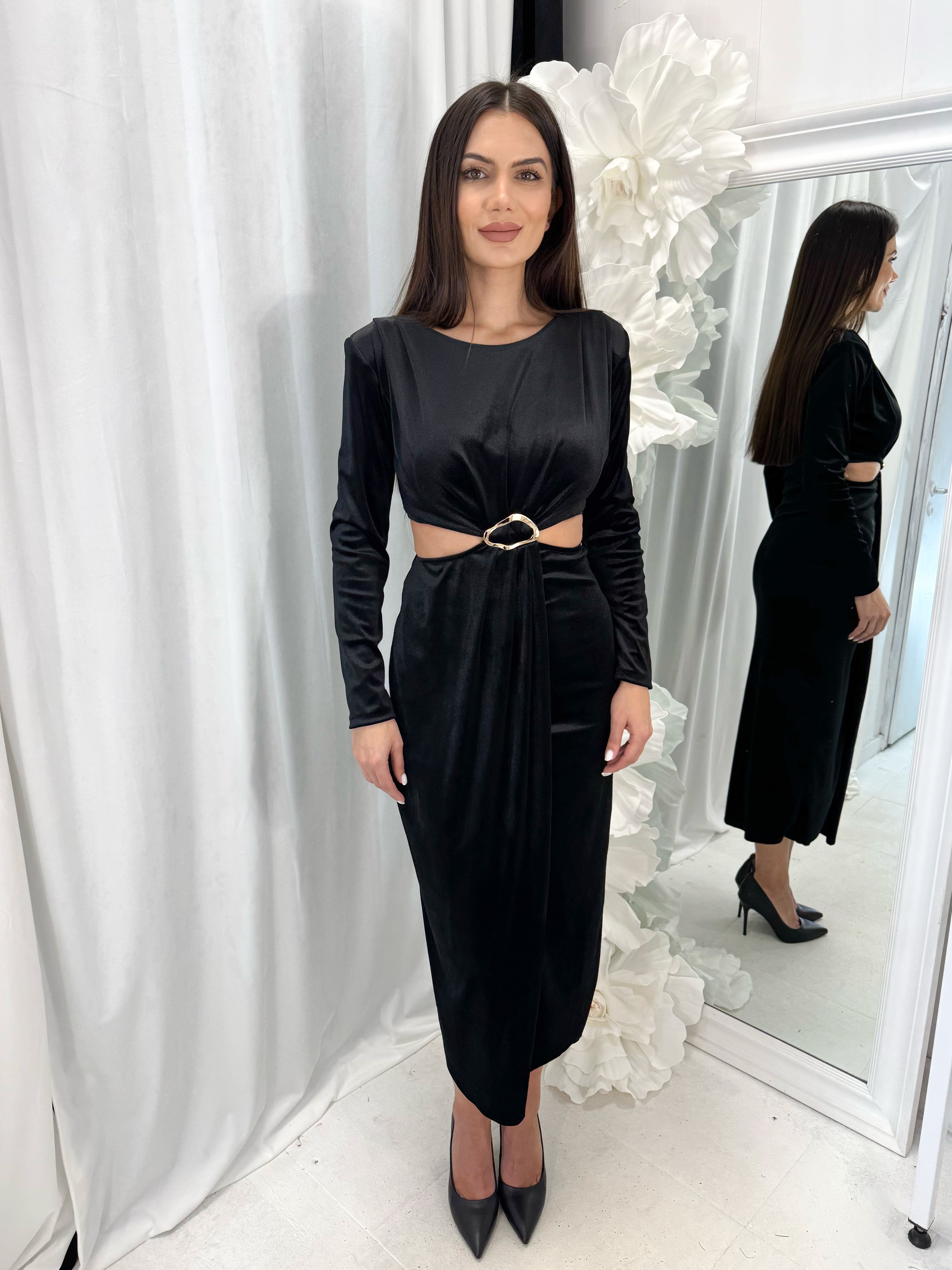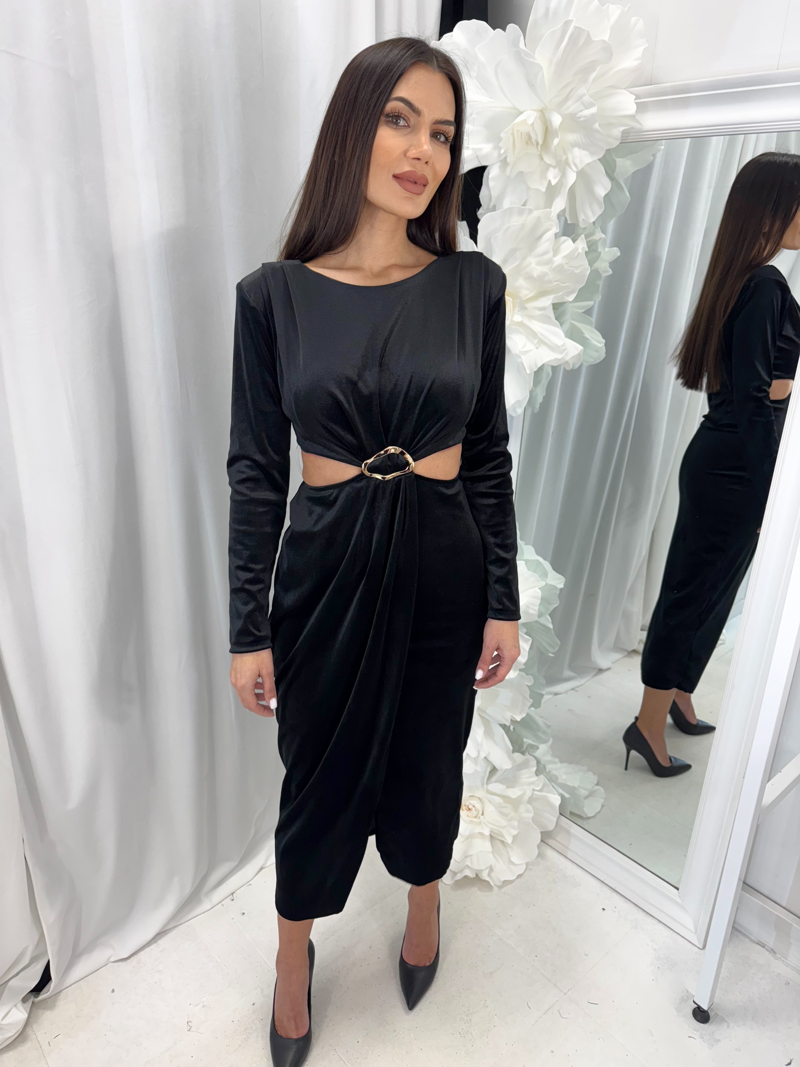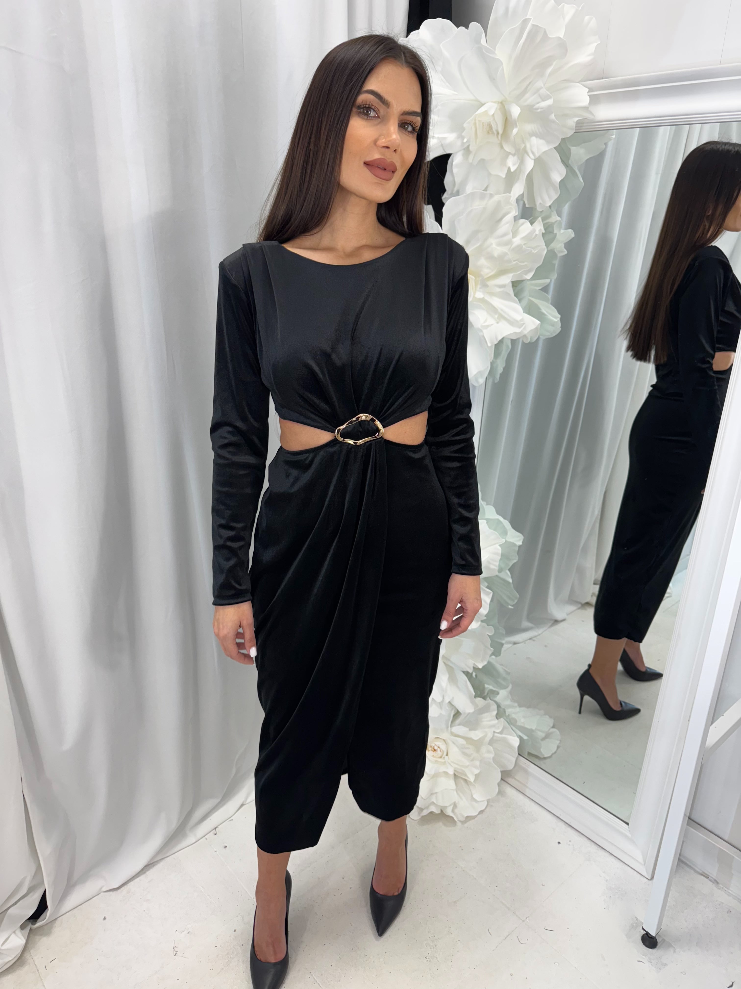 Rochia KIM GOLD este combinația perfectă între eleganță și minimalism. Este confecționată dintr-un material fin, elastic, care accentuează feminitatea și creează un ușor efect de drapaj. Detaliul auriu din talie conferă un aspect luxos și accentuează silueta. O alegere ideală pentru ocazii speciale, evenimente de seară sau ieșiri elegante în timpul zilei.