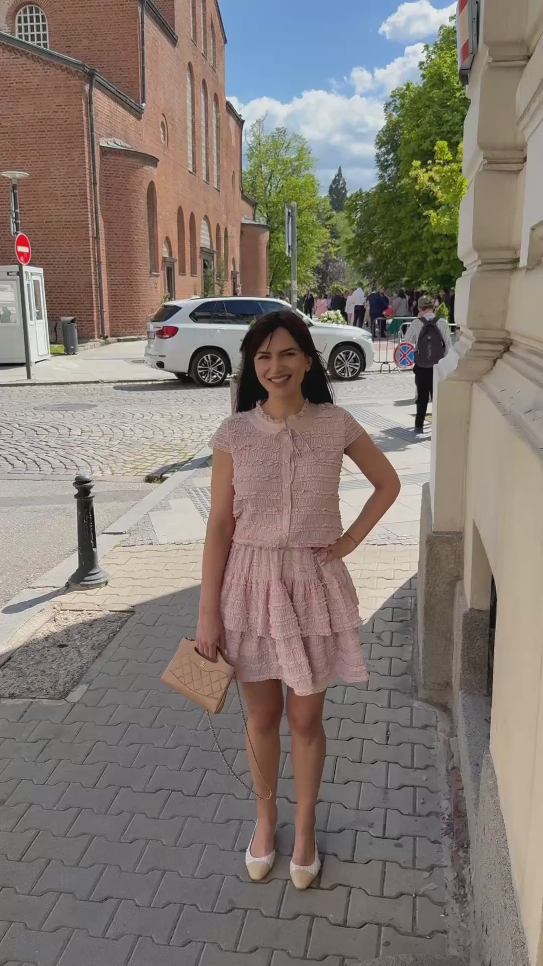 Delicat și elegant SET MONICA, format din două piese, cămașă fără mâneci, cu închidere în față și fustă cu talie înaltă.