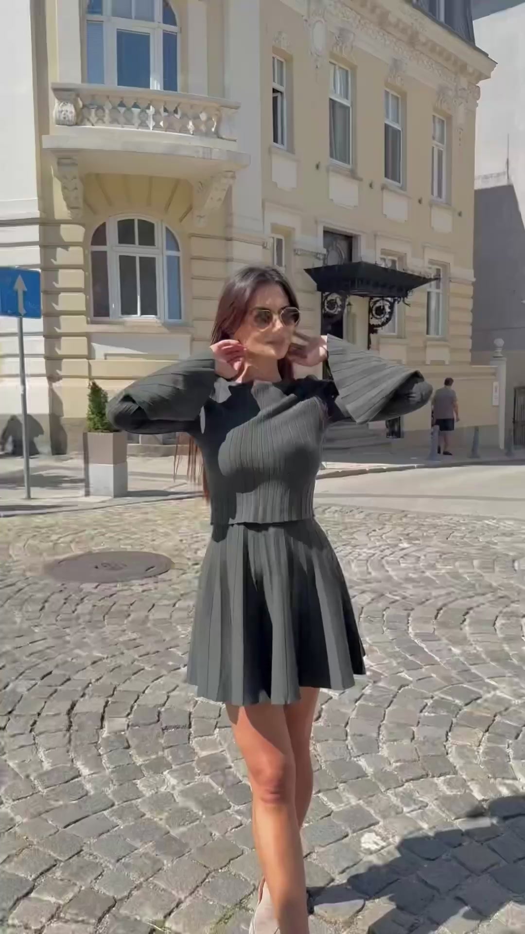 SET Cambridge din două piese - vestă și fustă scurtă plisată.