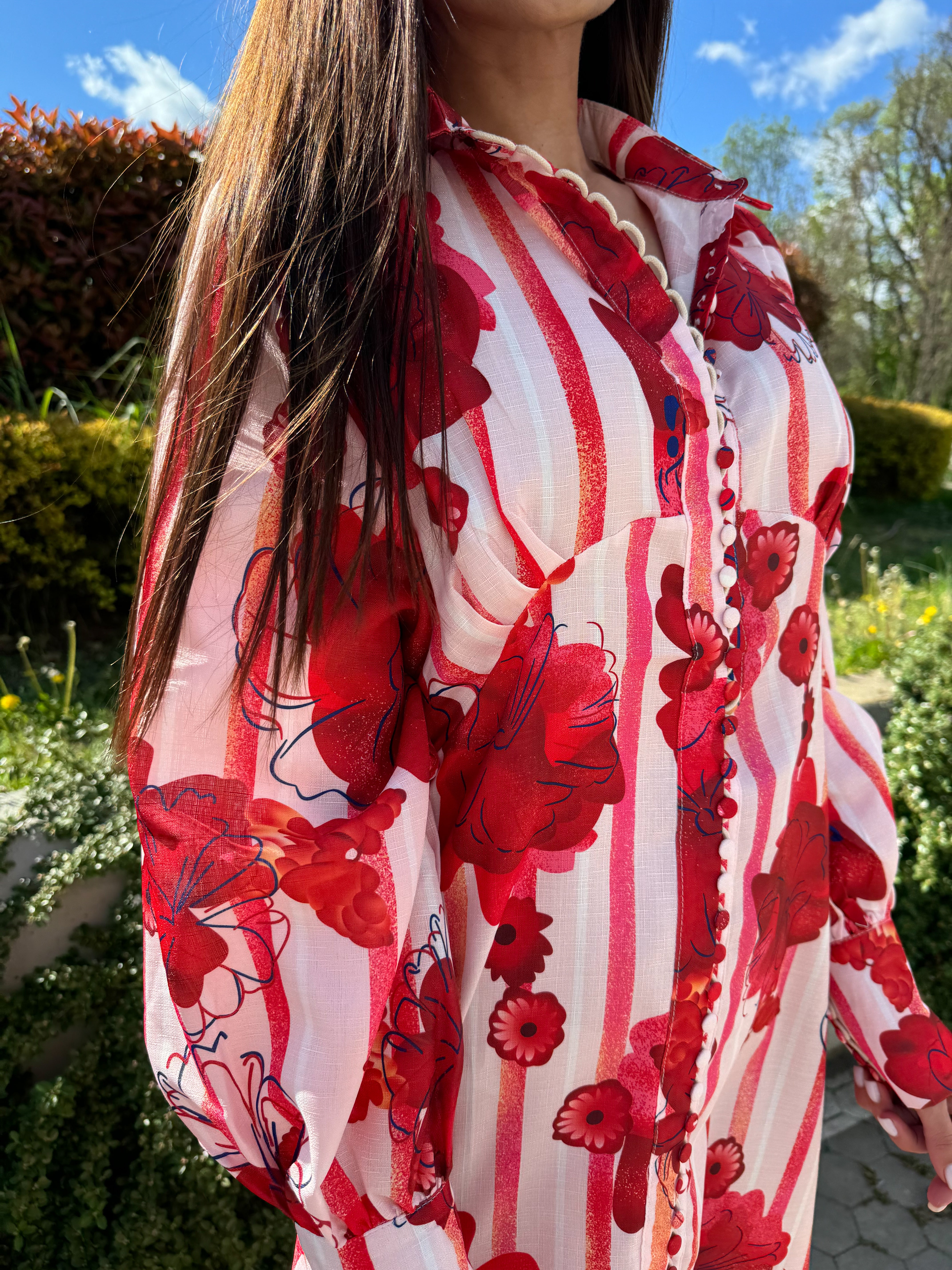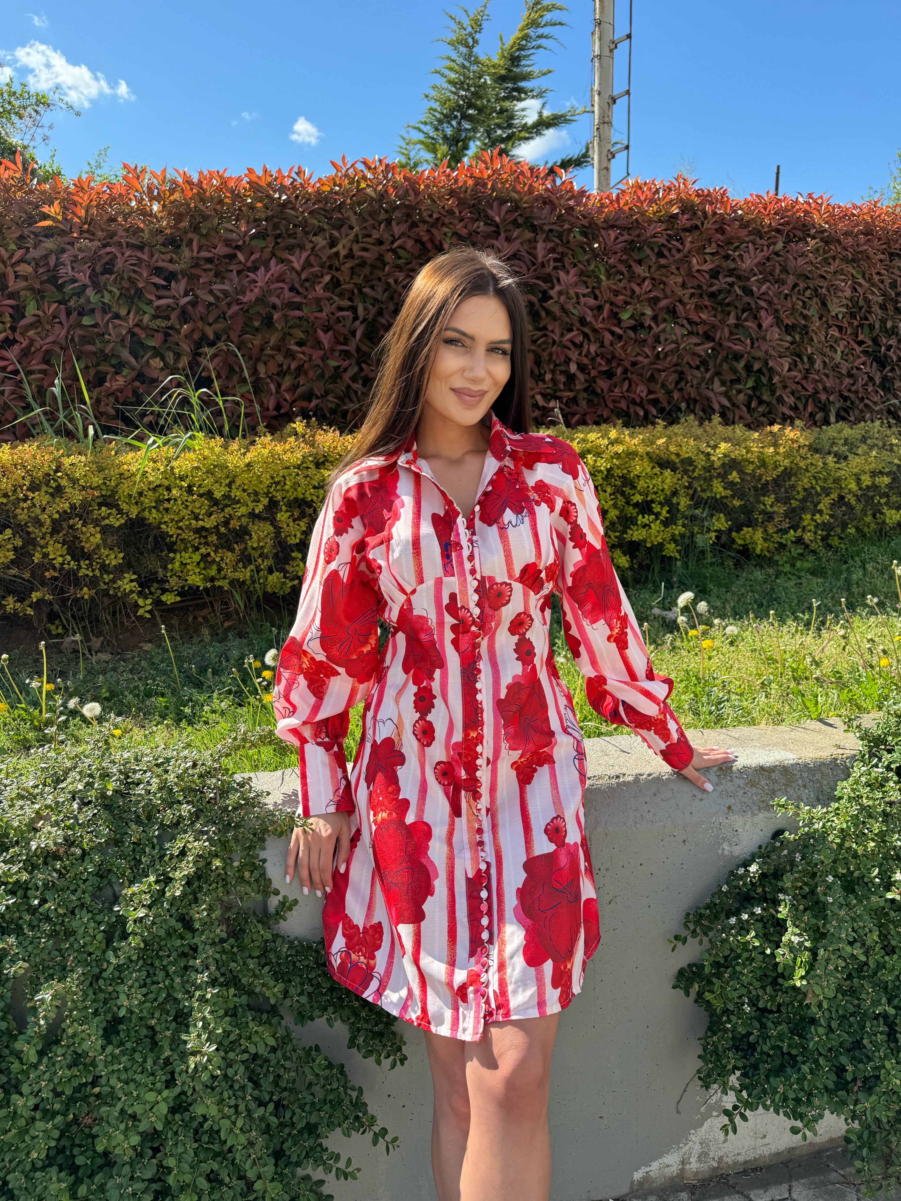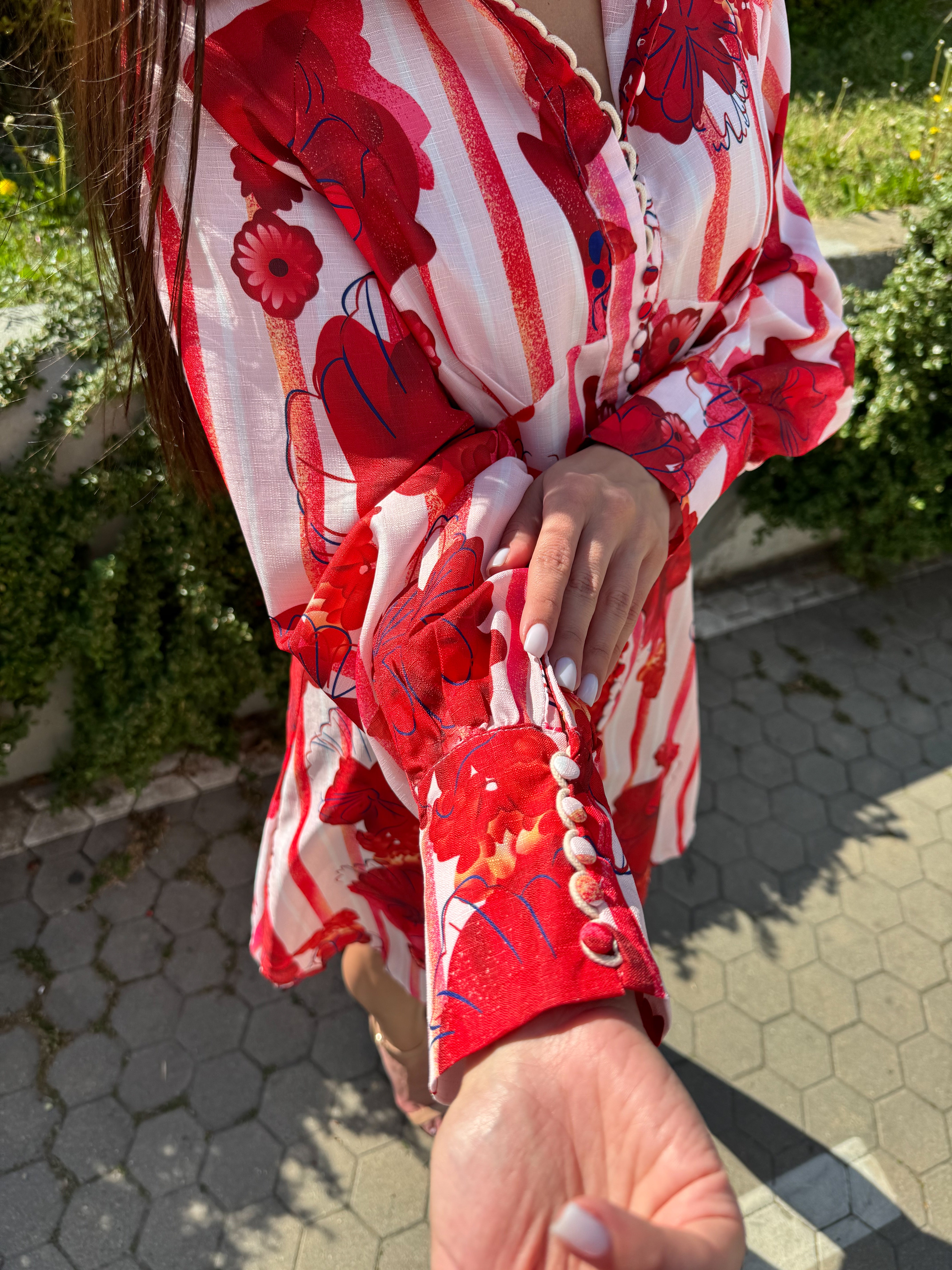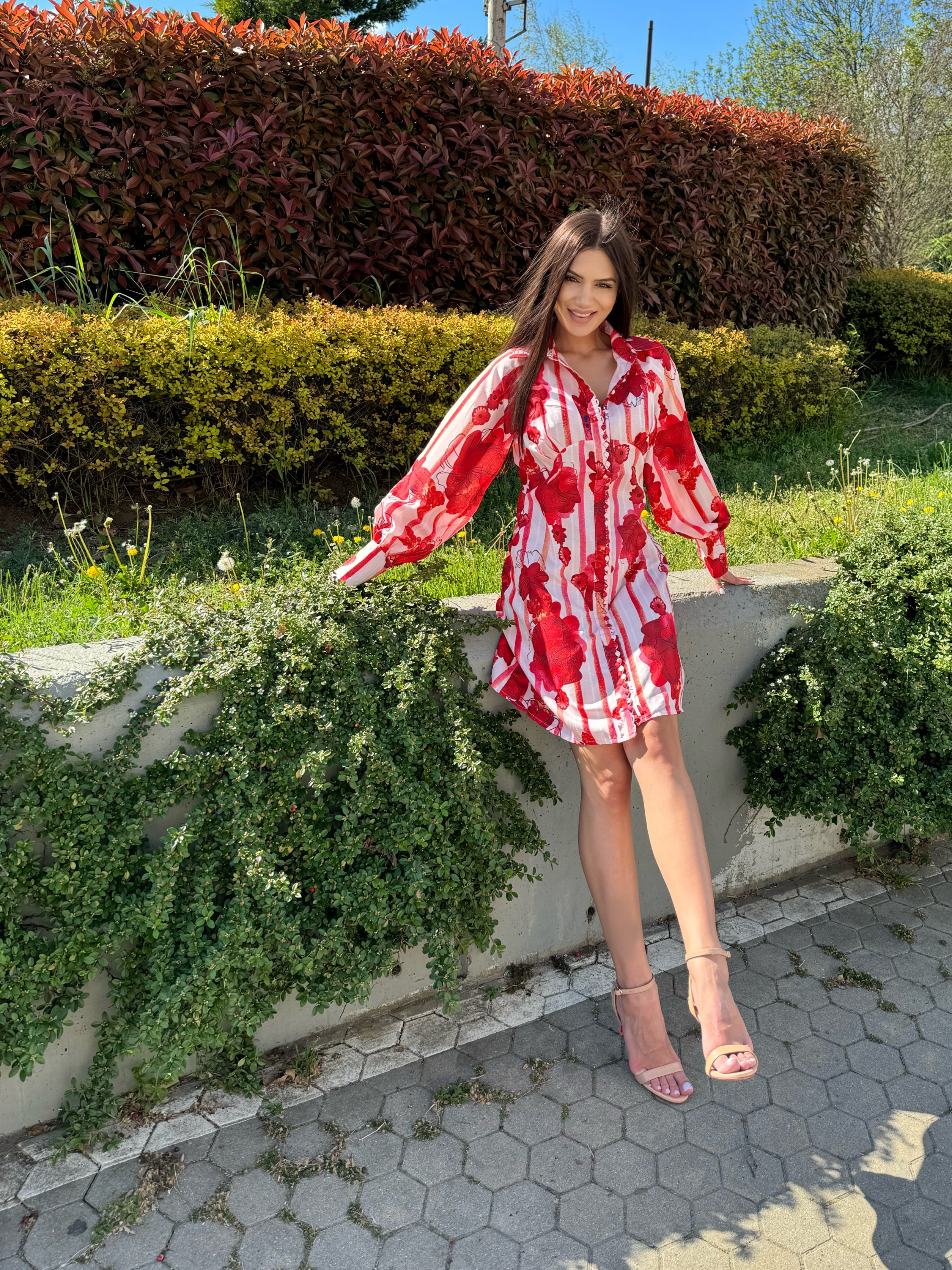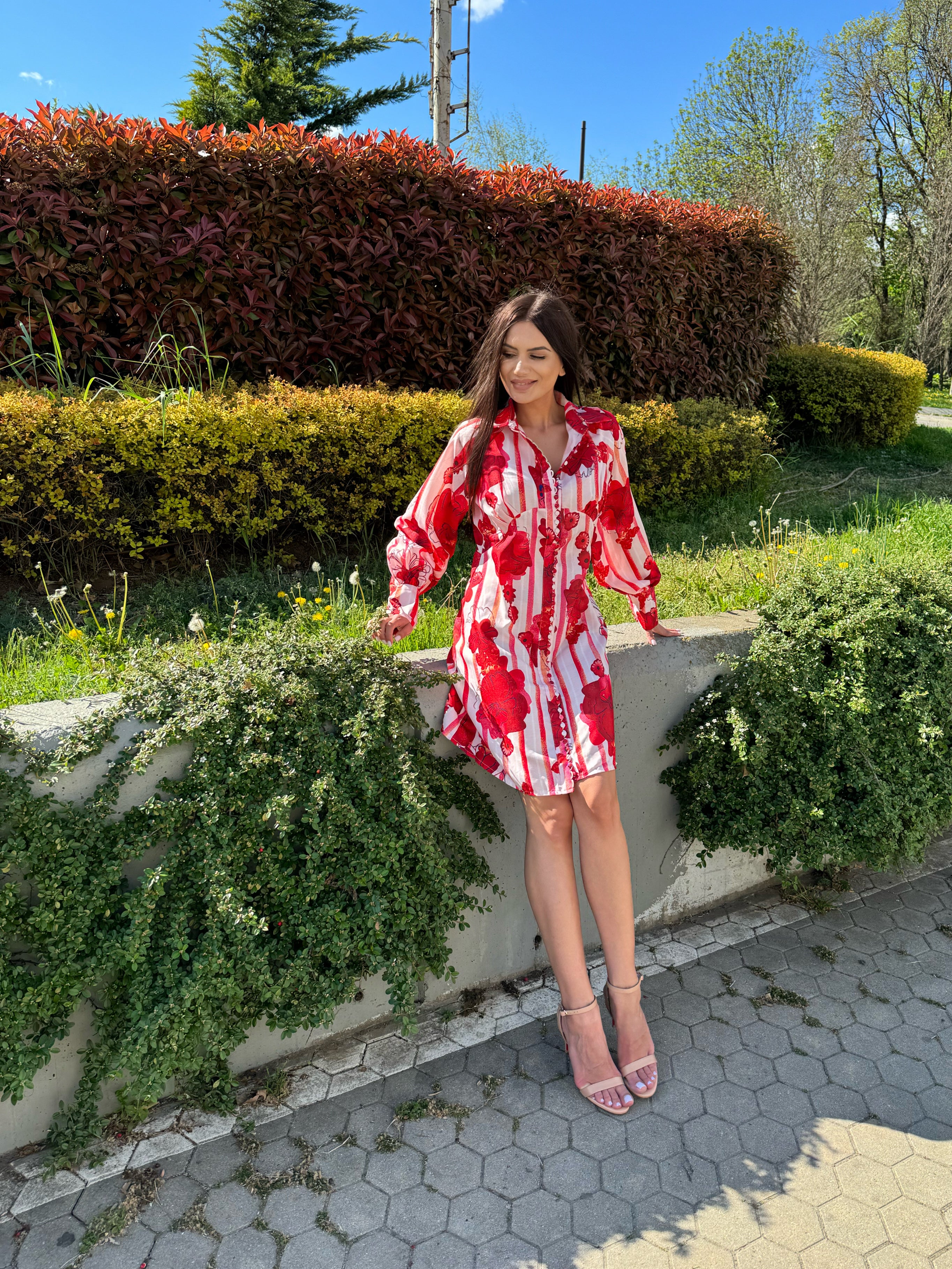 Rochie elegantă și sexy, lungă până la genunchi! Modelul se închide în față, cu nasturi îmbrăcați din același material. Material și croială de cea mai înaltă calitate.