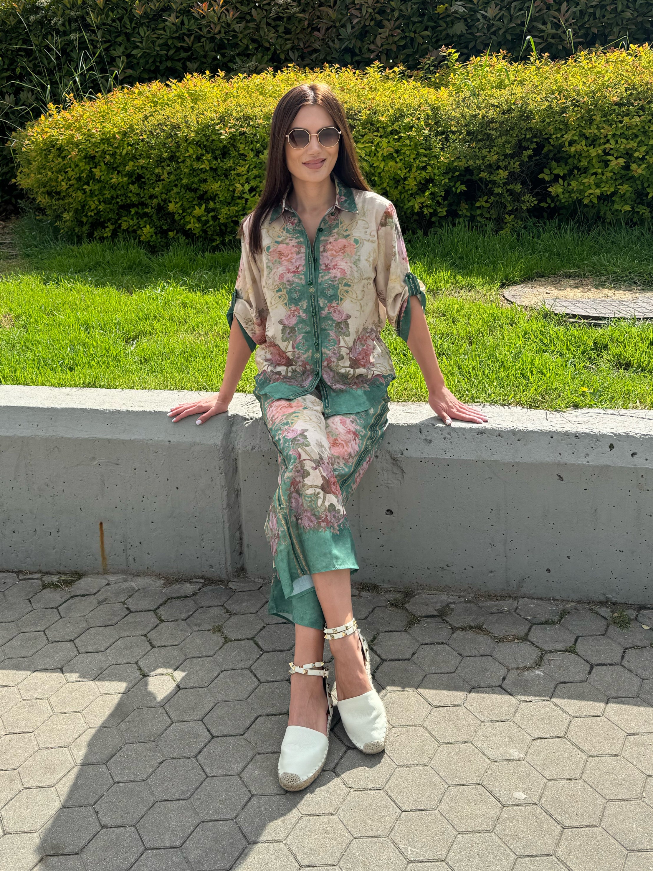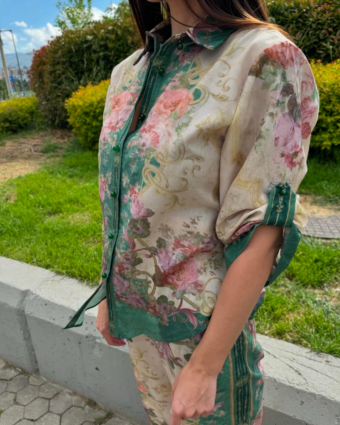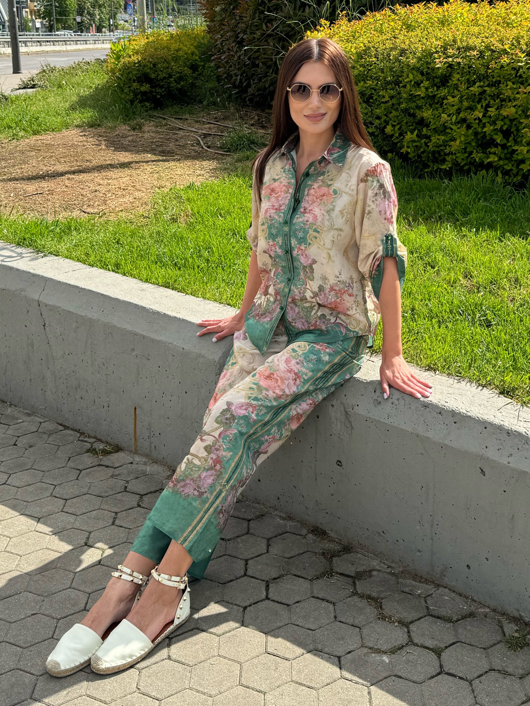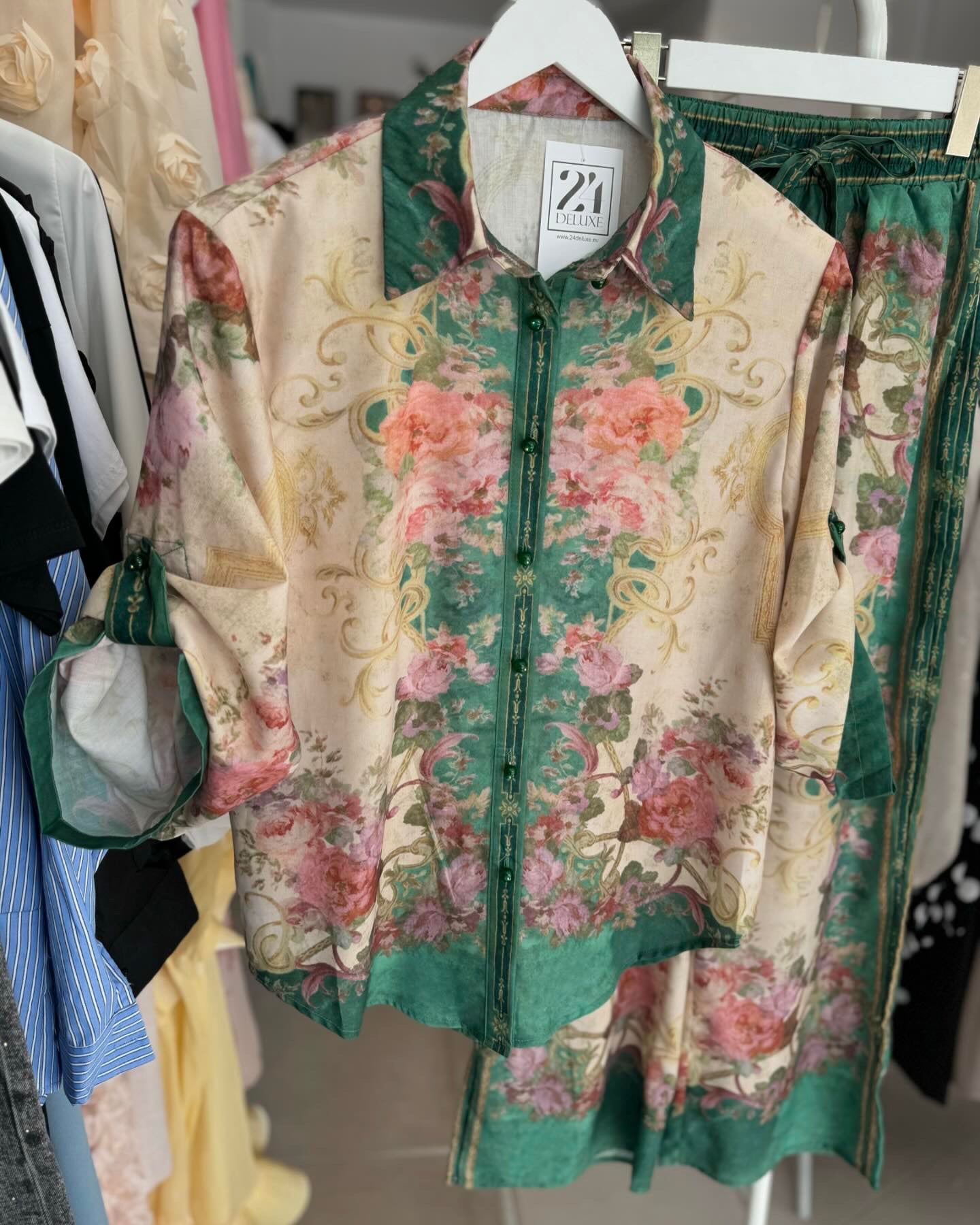 SET două piese Cămașă lungă cu nasturi în față + Pantaloni cu talie înaltă
