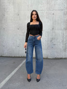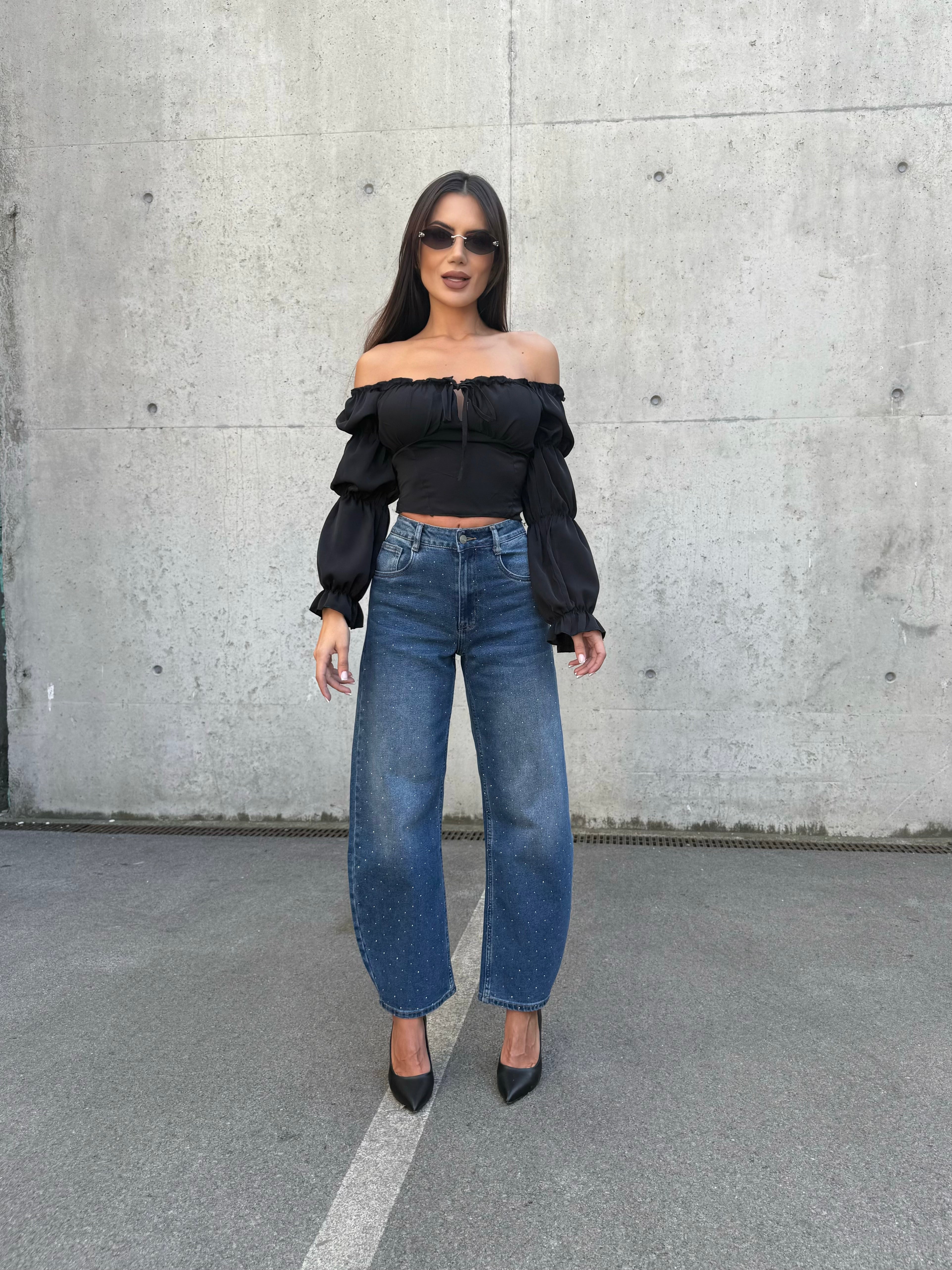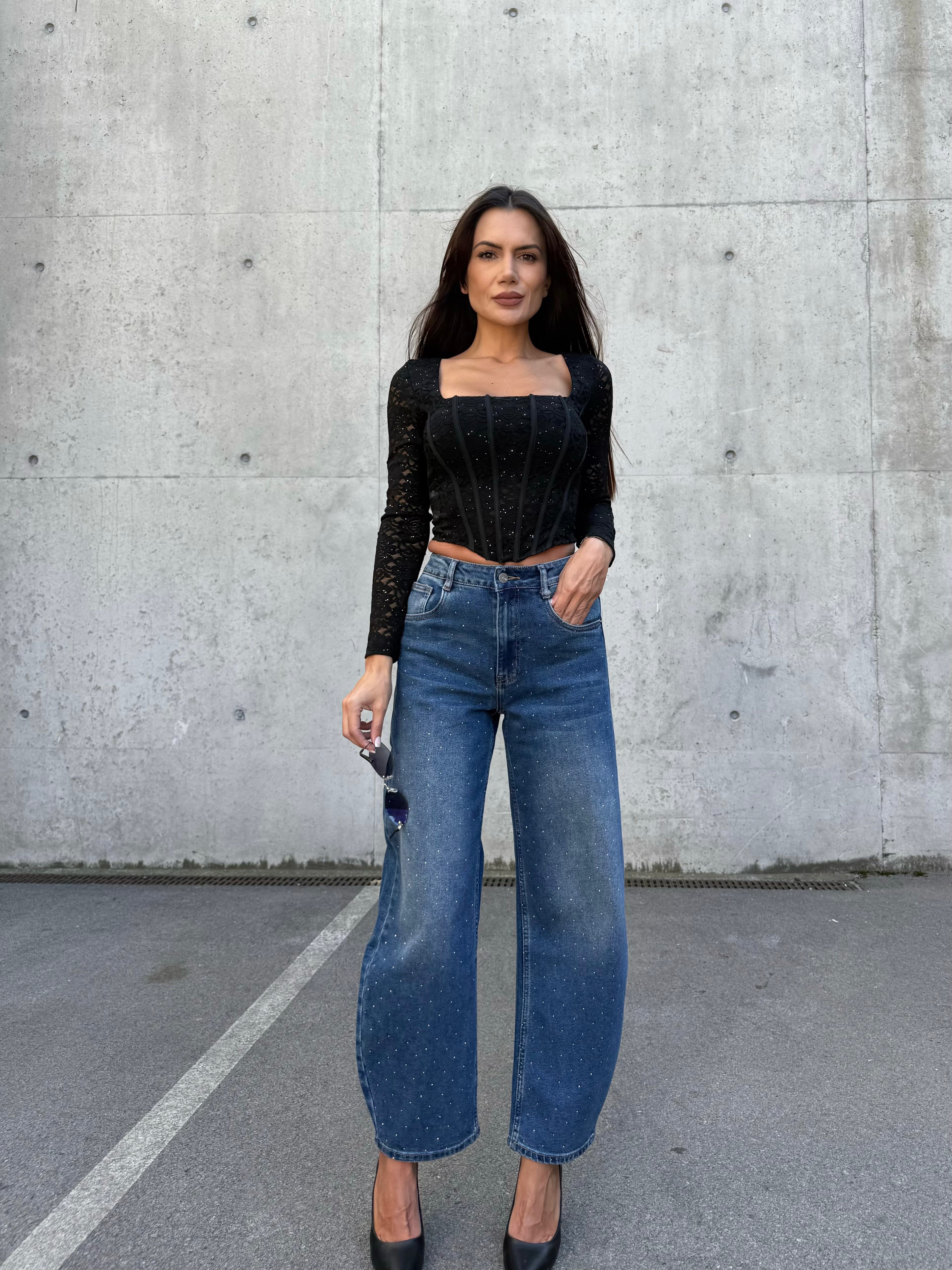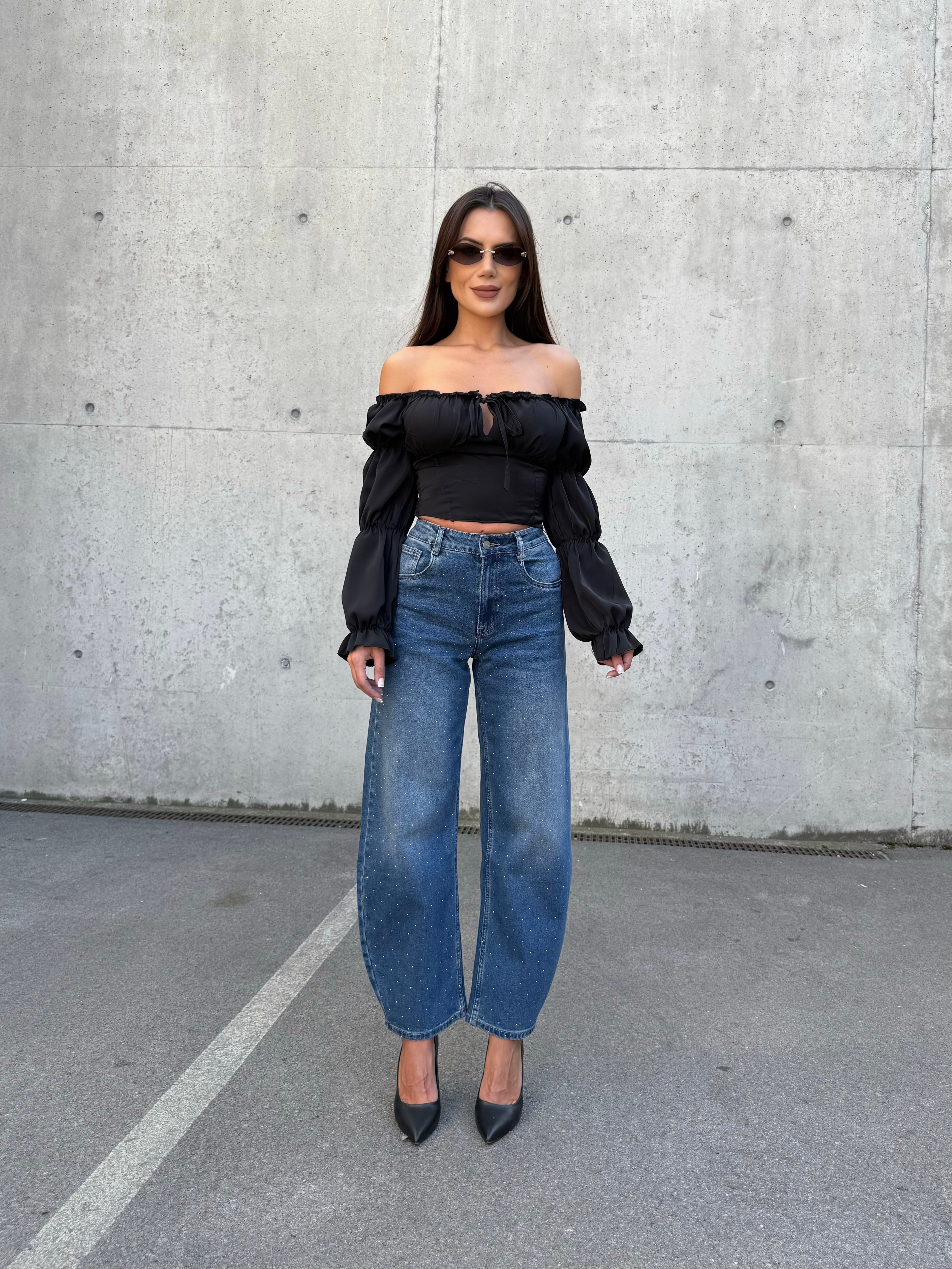 Създадени да привличат внимание, дънките BALLOON DENIM комбинират модерния балон силует с изящна декорация от камъни. С висока талия, комфортна кройка и елегантно падане, те са идеалният избор за всяка визия – от ежедневен street style до вечерен изискан аутфит.