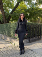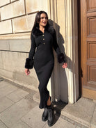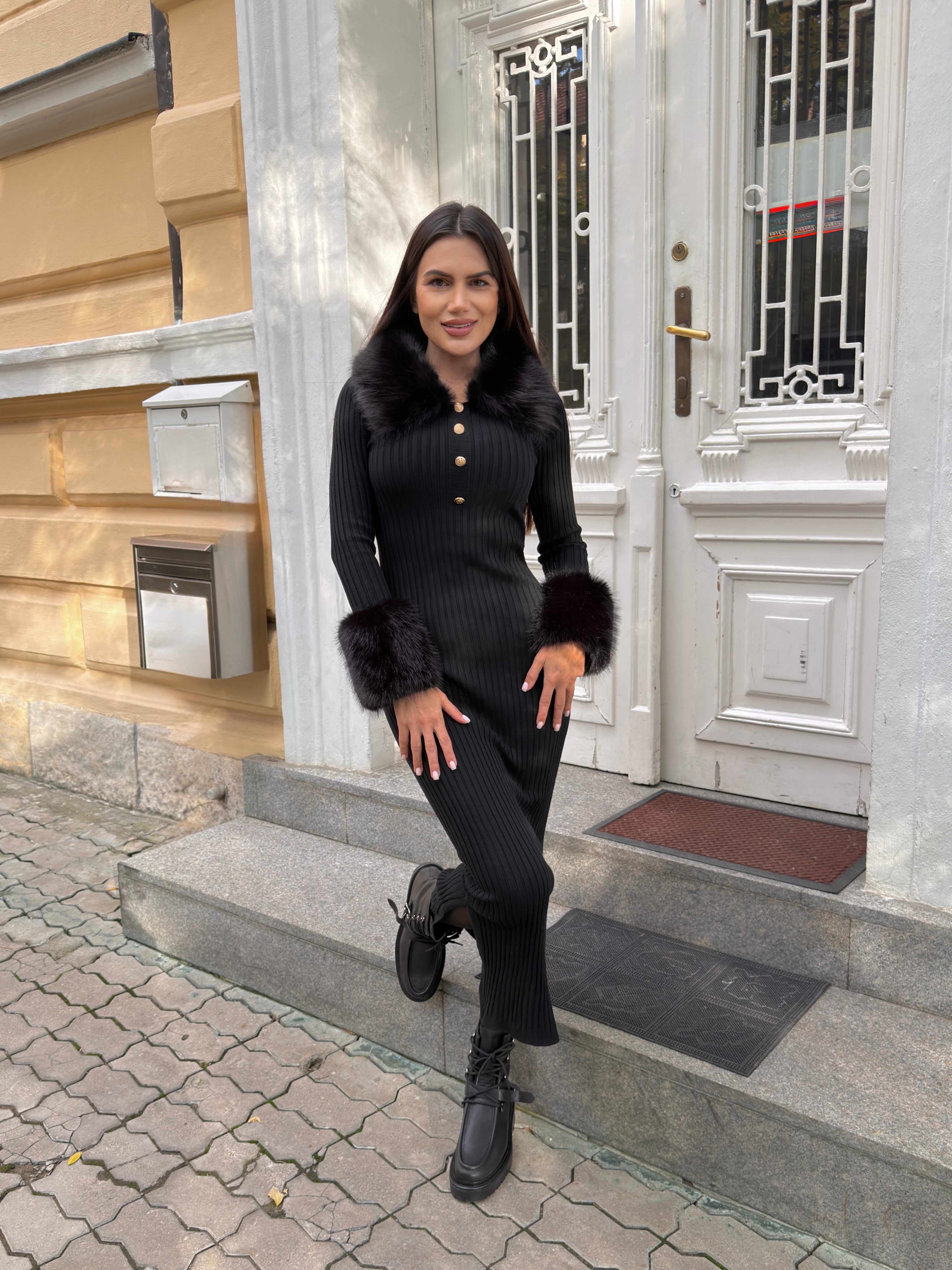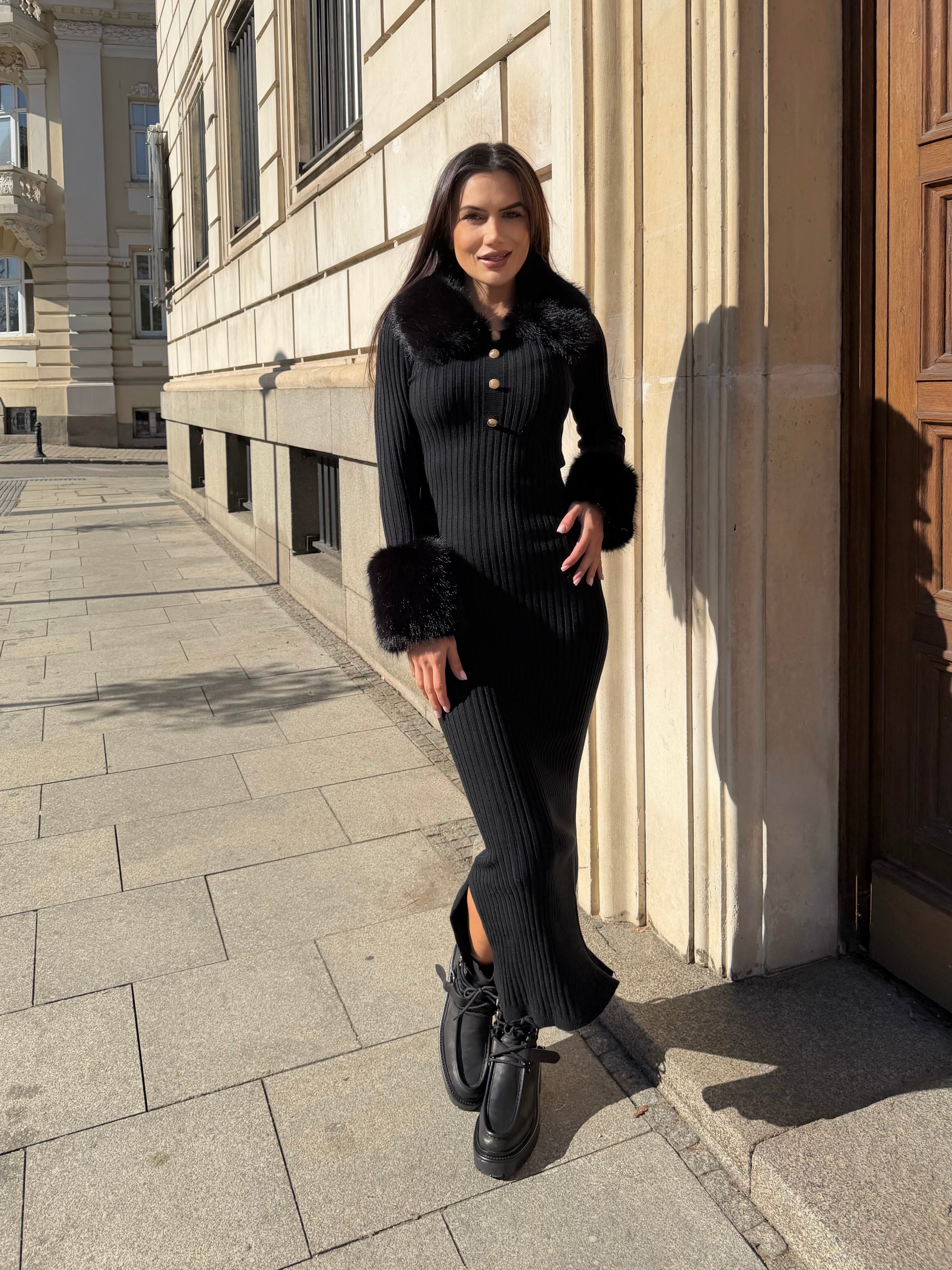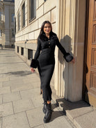 ALEN DRESS with a polo collar made of thick and tight machine knit.