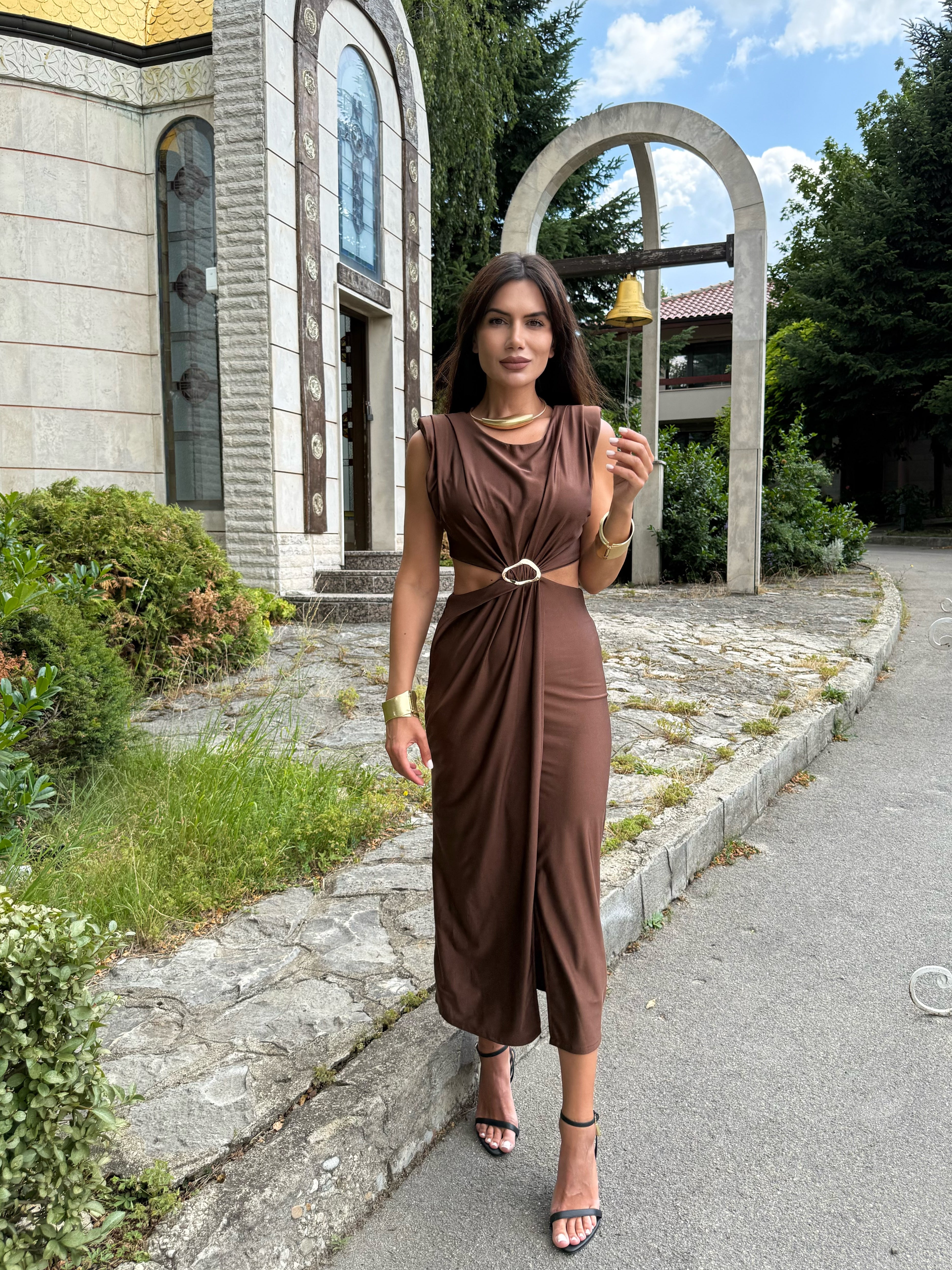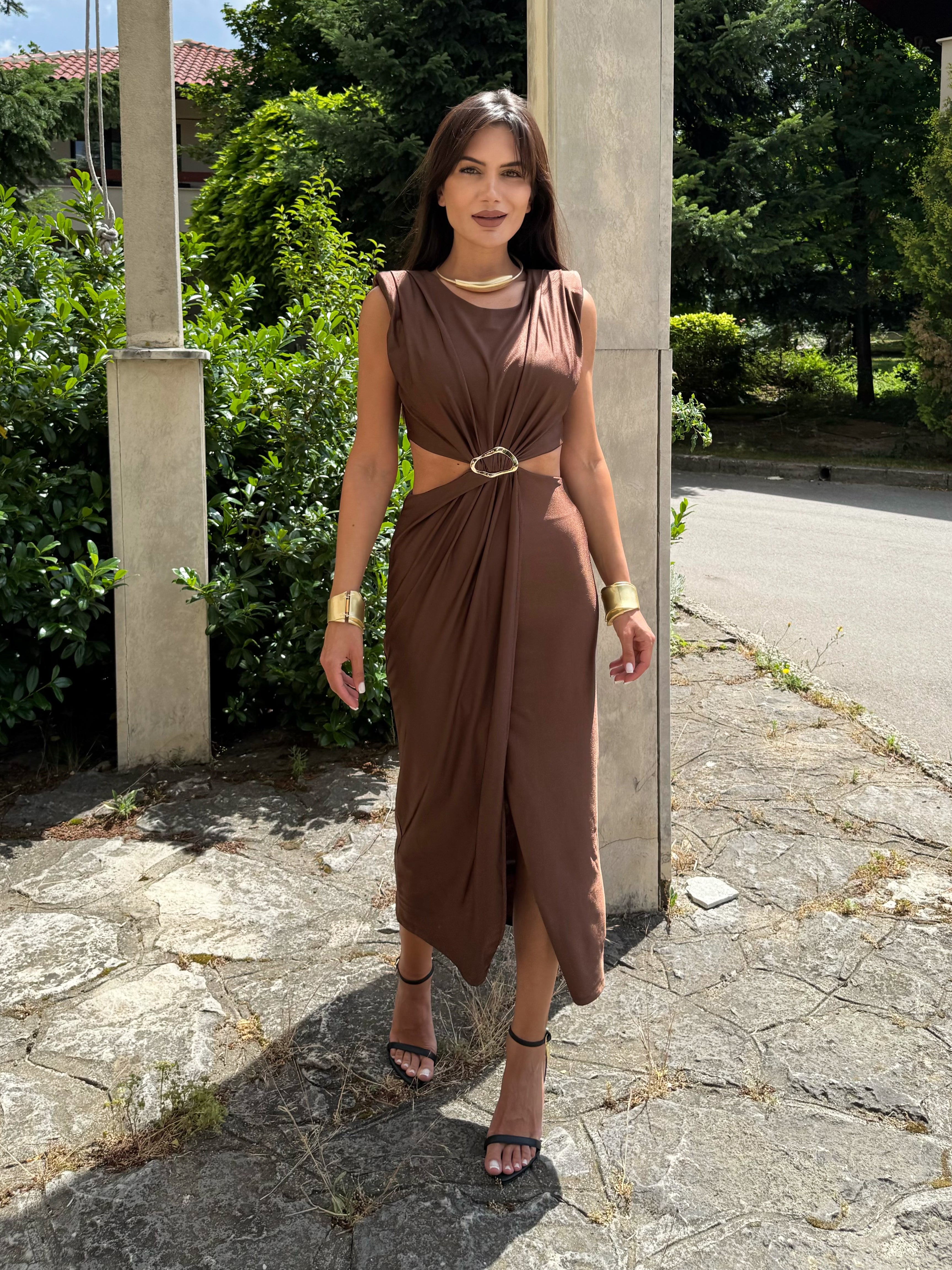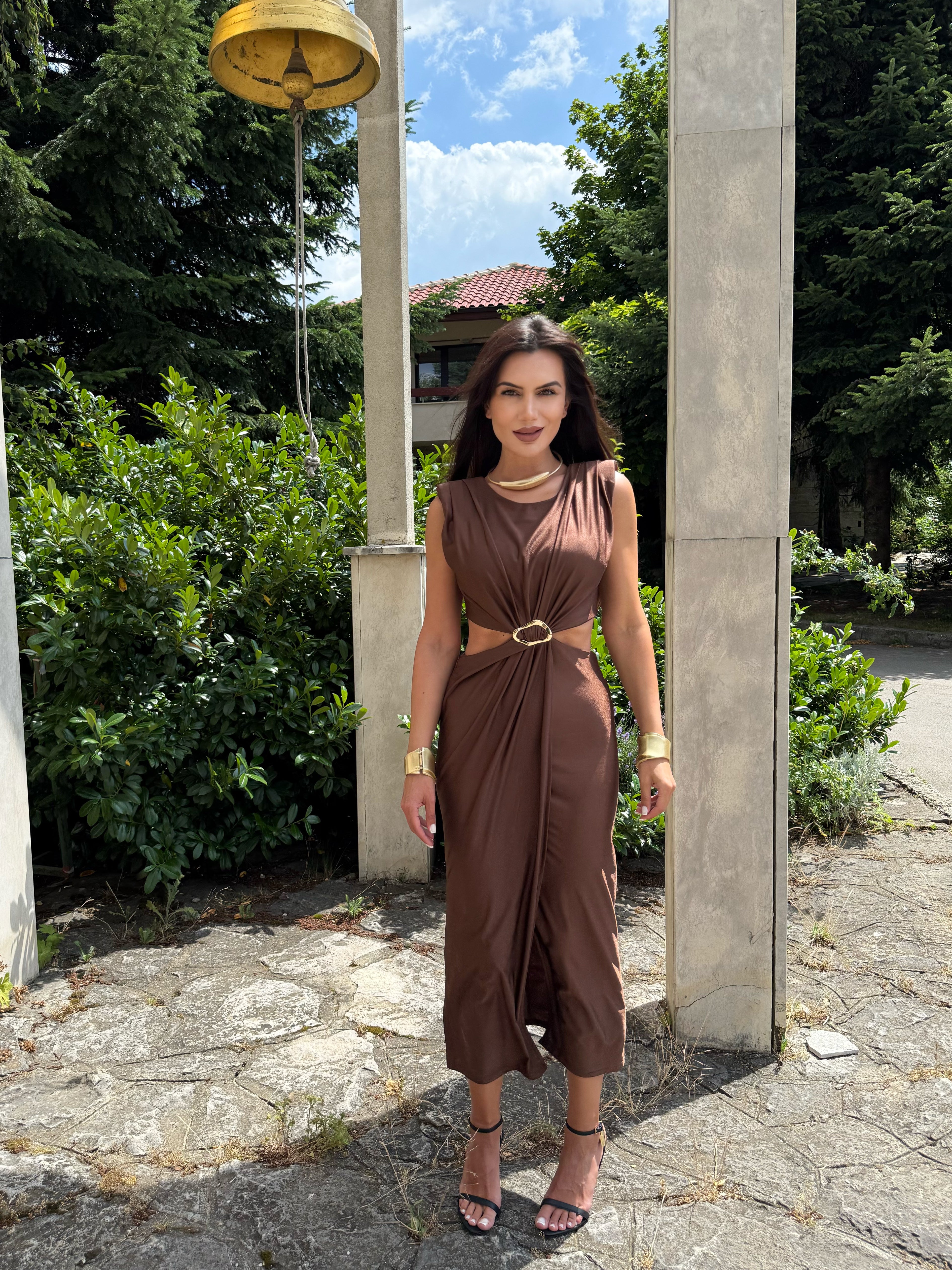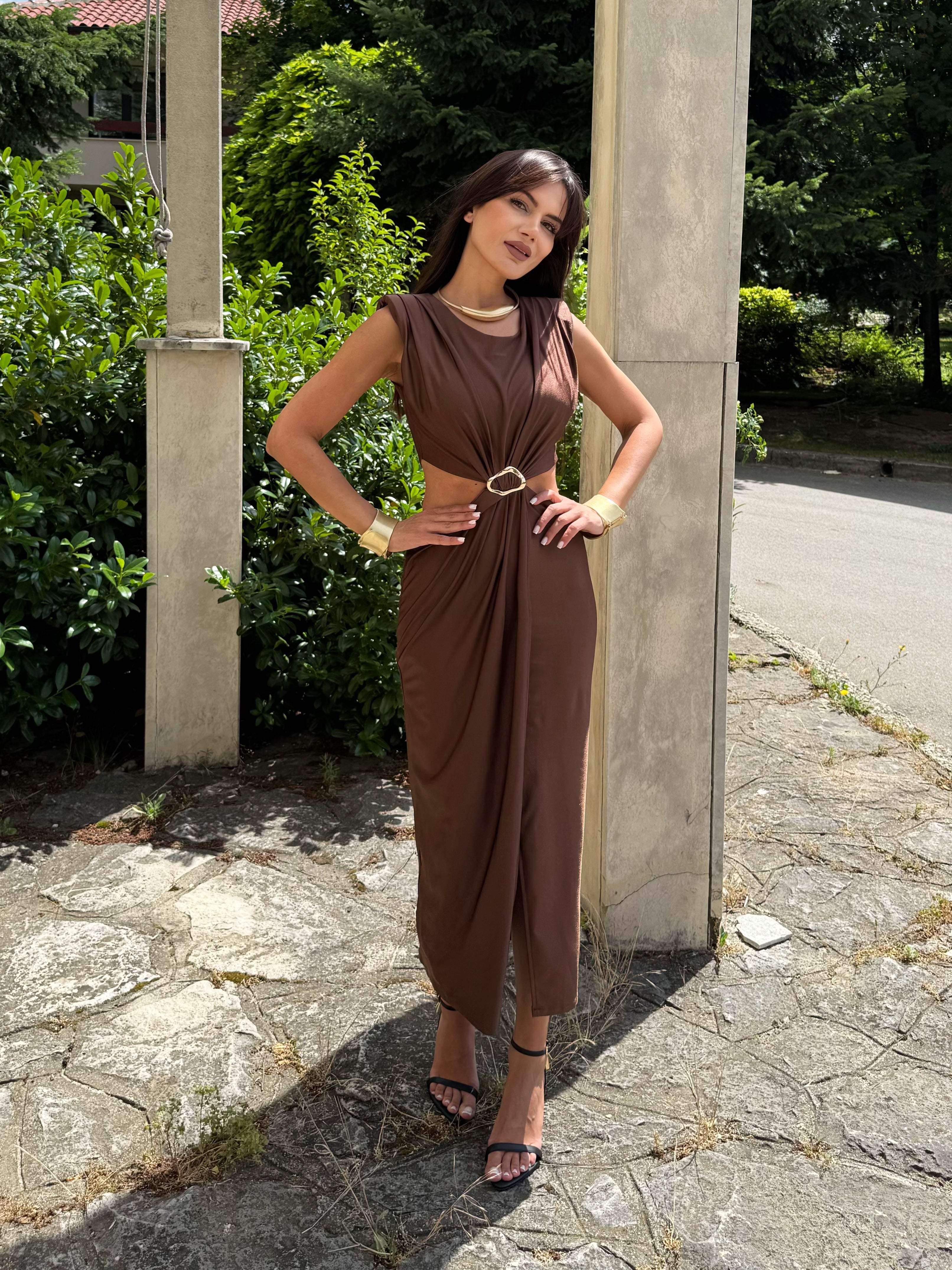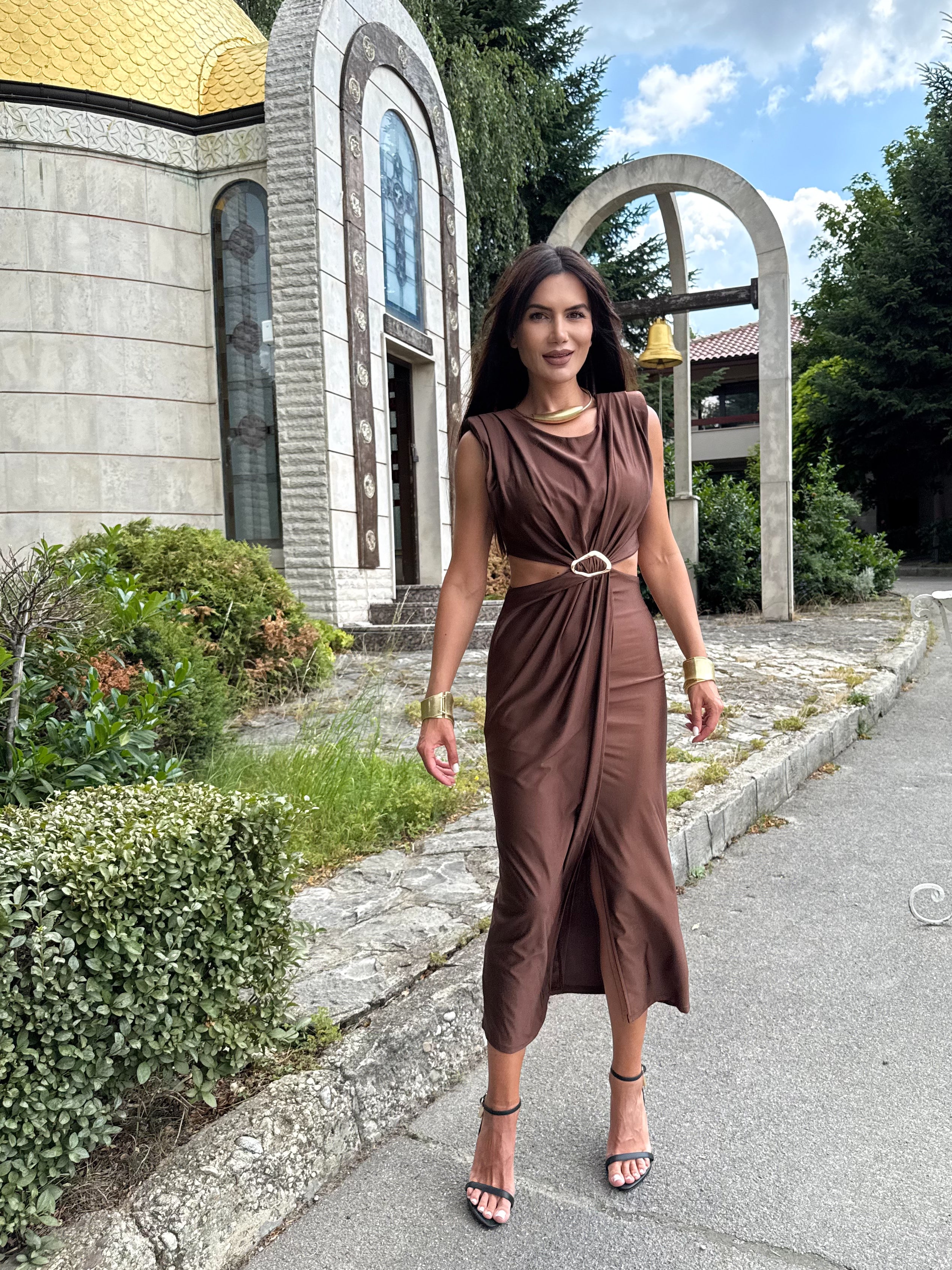 KIM GOLD dress is the perfect combination of elegance and minimalism. Made of fine, elastic fabric that emphasizes femininity and creates a slight draping effect. The gold detail at the waist gives a luxurious look and accentuates the silhouette. An ideal choice for special occasions, evening events or stylish daytime outings.