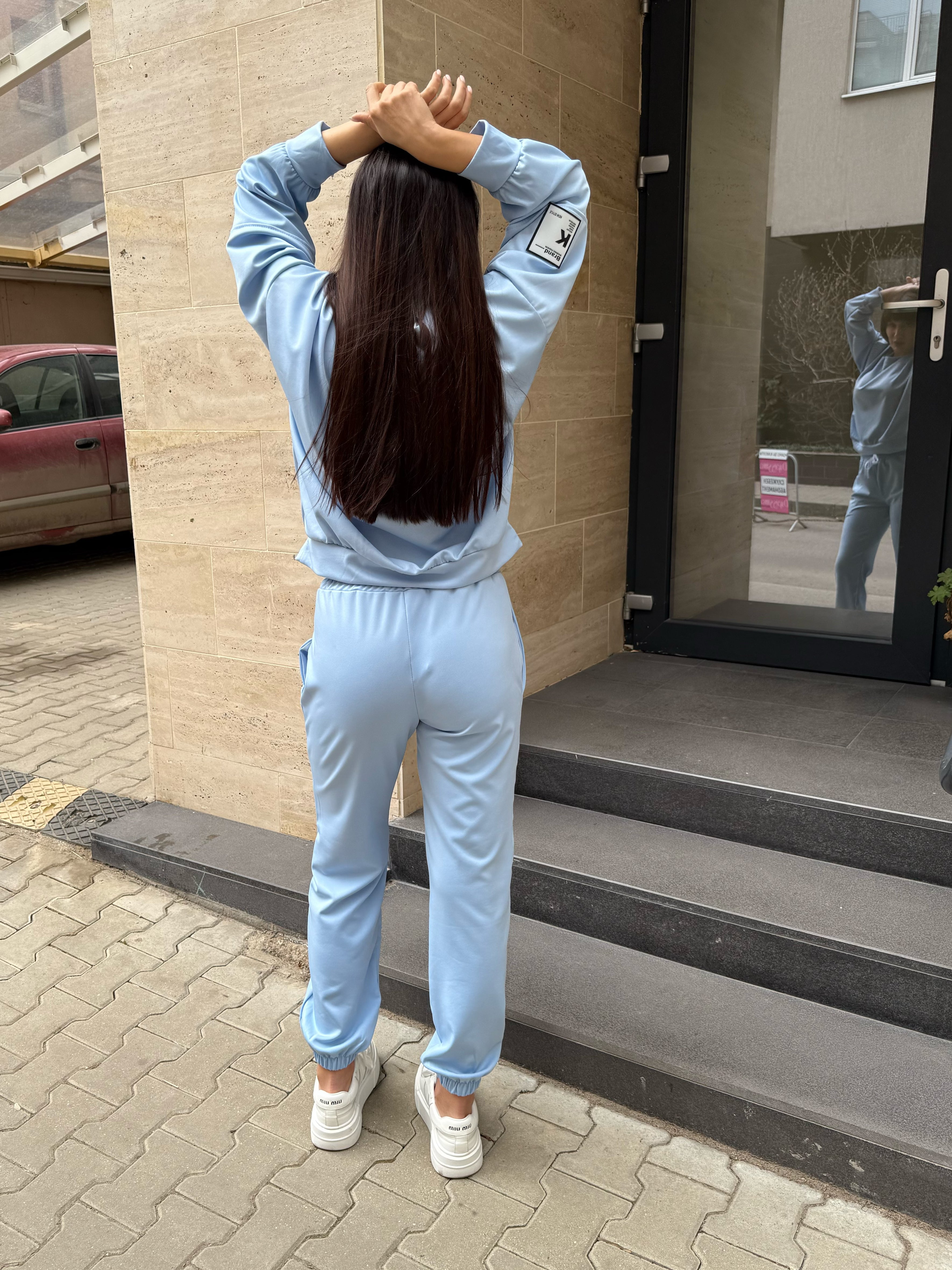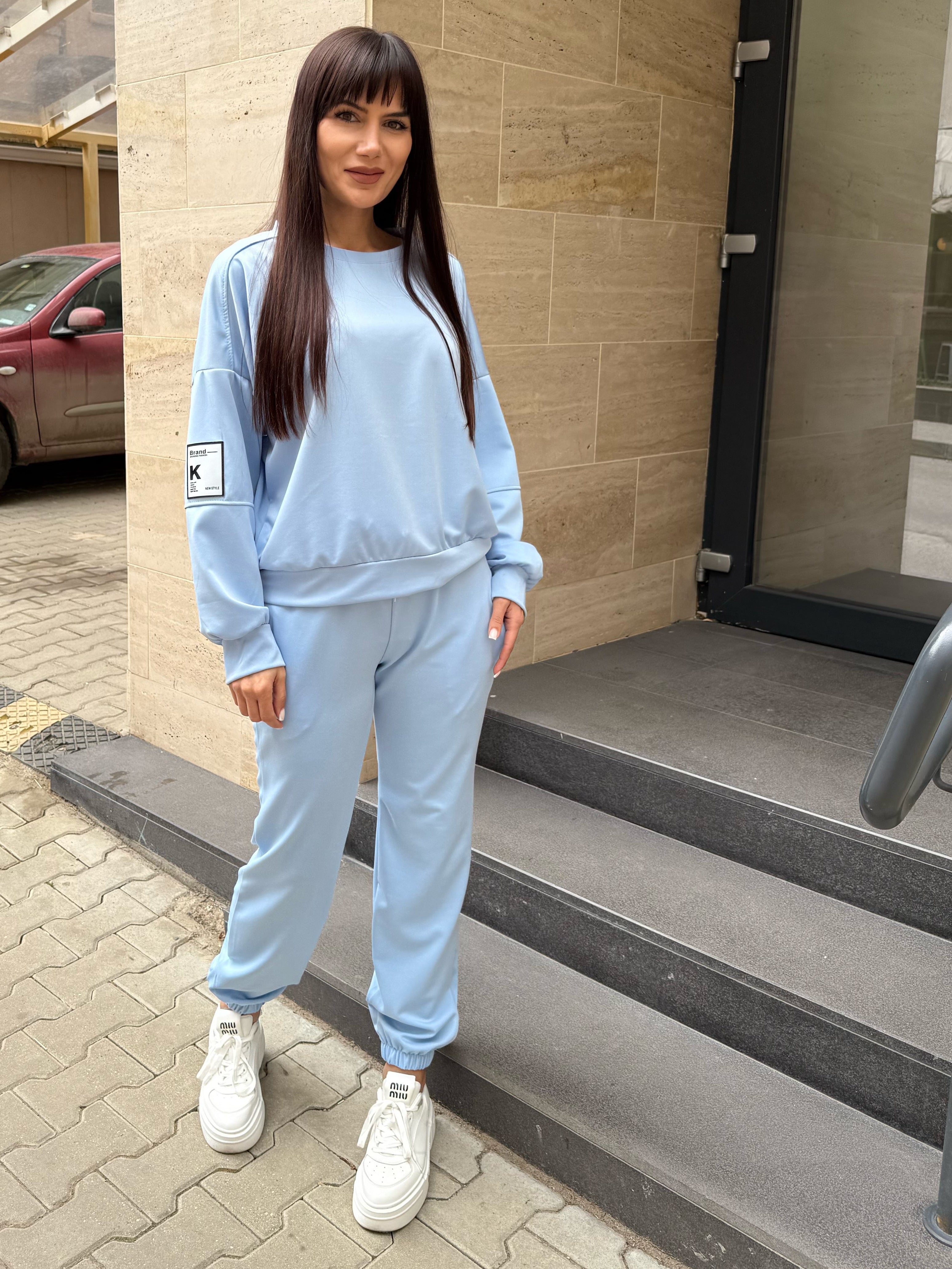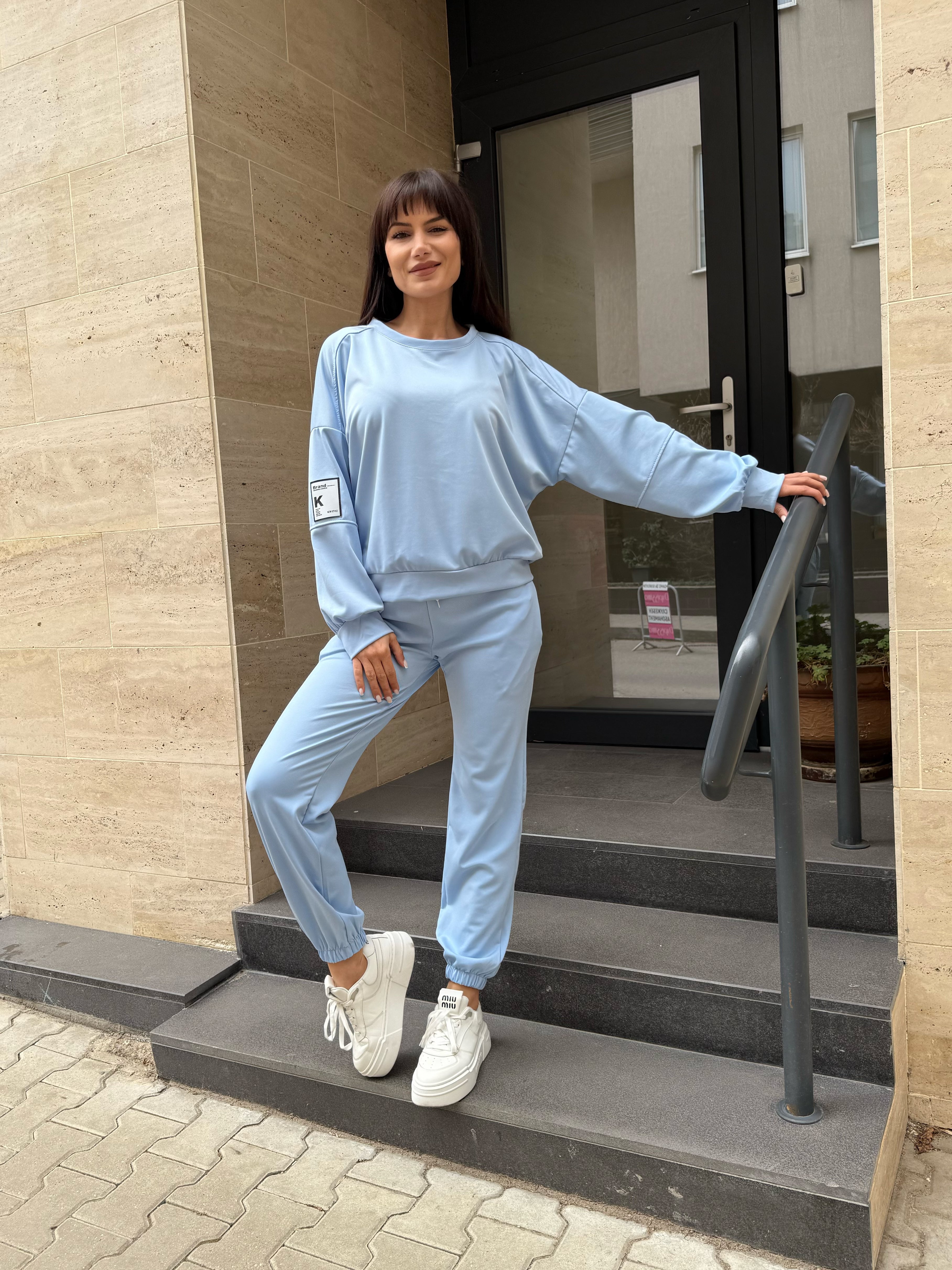 Two-piece SPORTS SET - Loose-fitting blouse with round neckline and high-waisted pants.