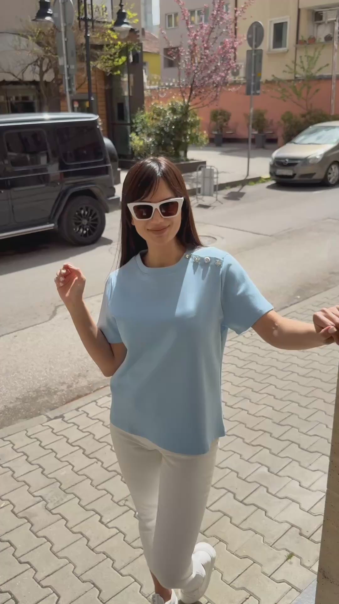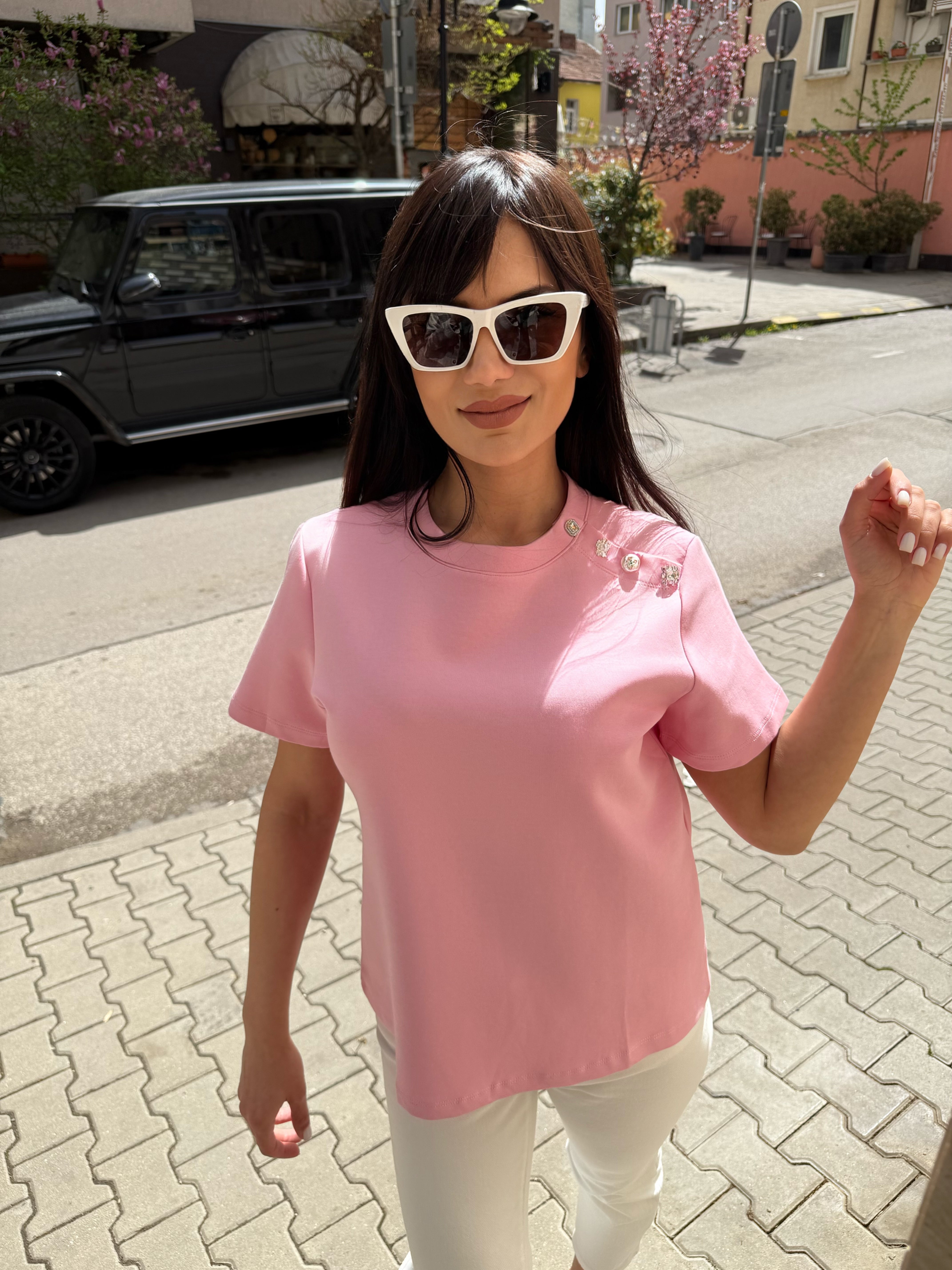 BIJOU T-SHIRT, unique fabric! A stylish accent are the jewel buttons on the round neckline.