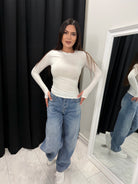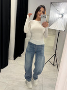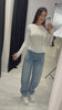 Високата талия оформя силуета, а широкият крачол създава модерна и балансирана визия.