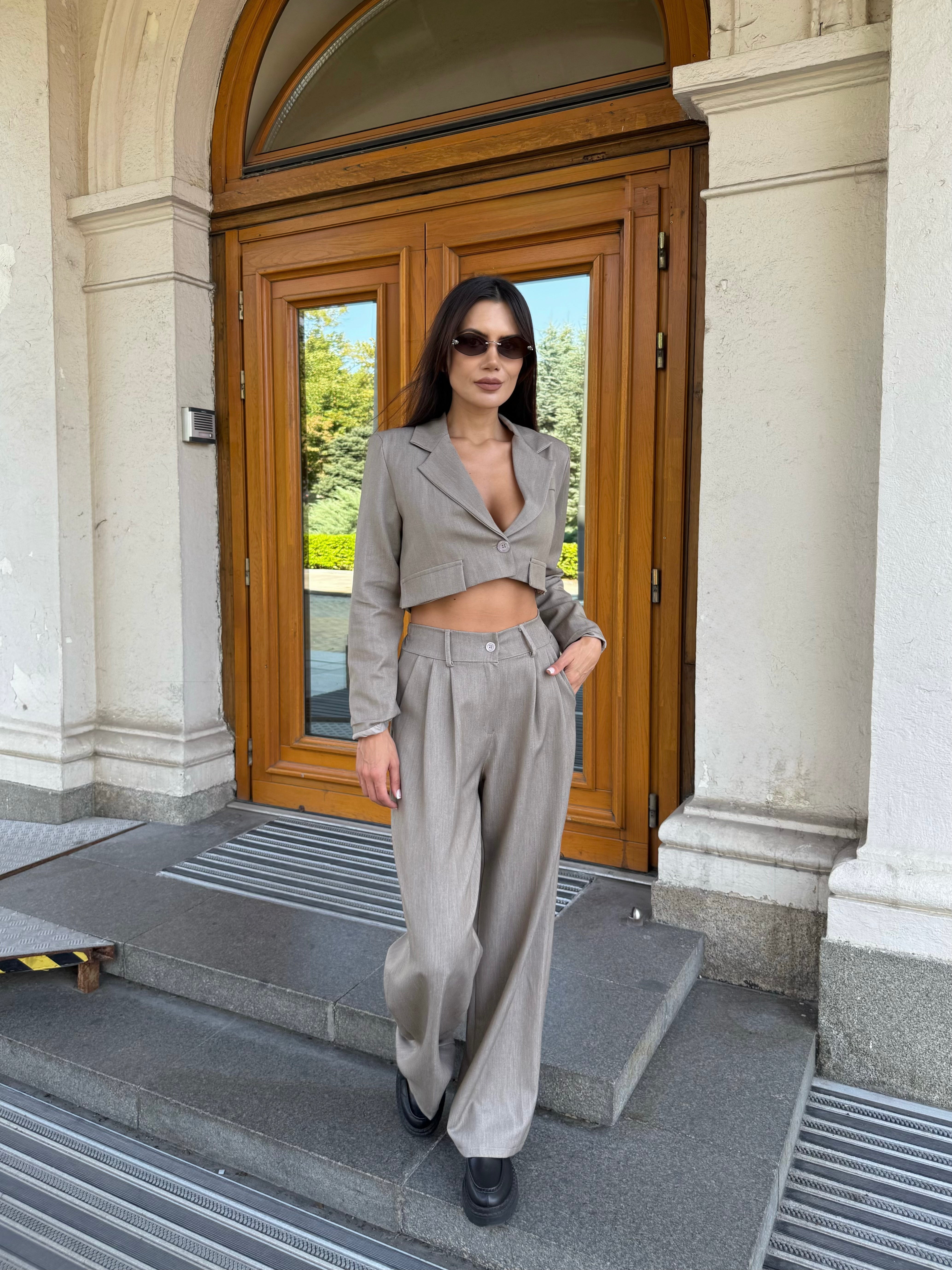 City Crop Suit Beige – костюм, който съчетава комфорт и елегантност в един модерен силует.