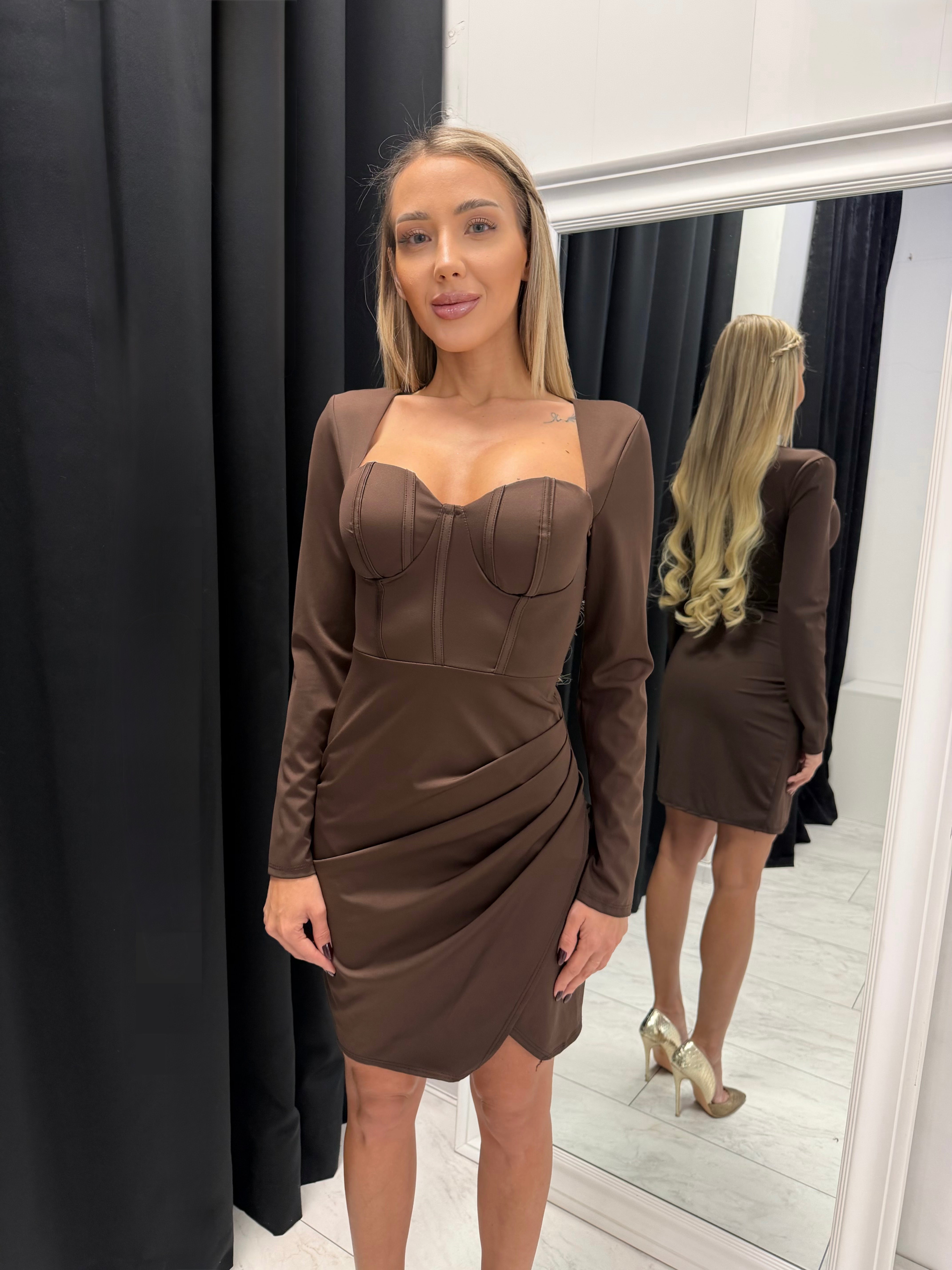 SCULPT DRESS - мини рокля с корсет ефект и драпирана пола